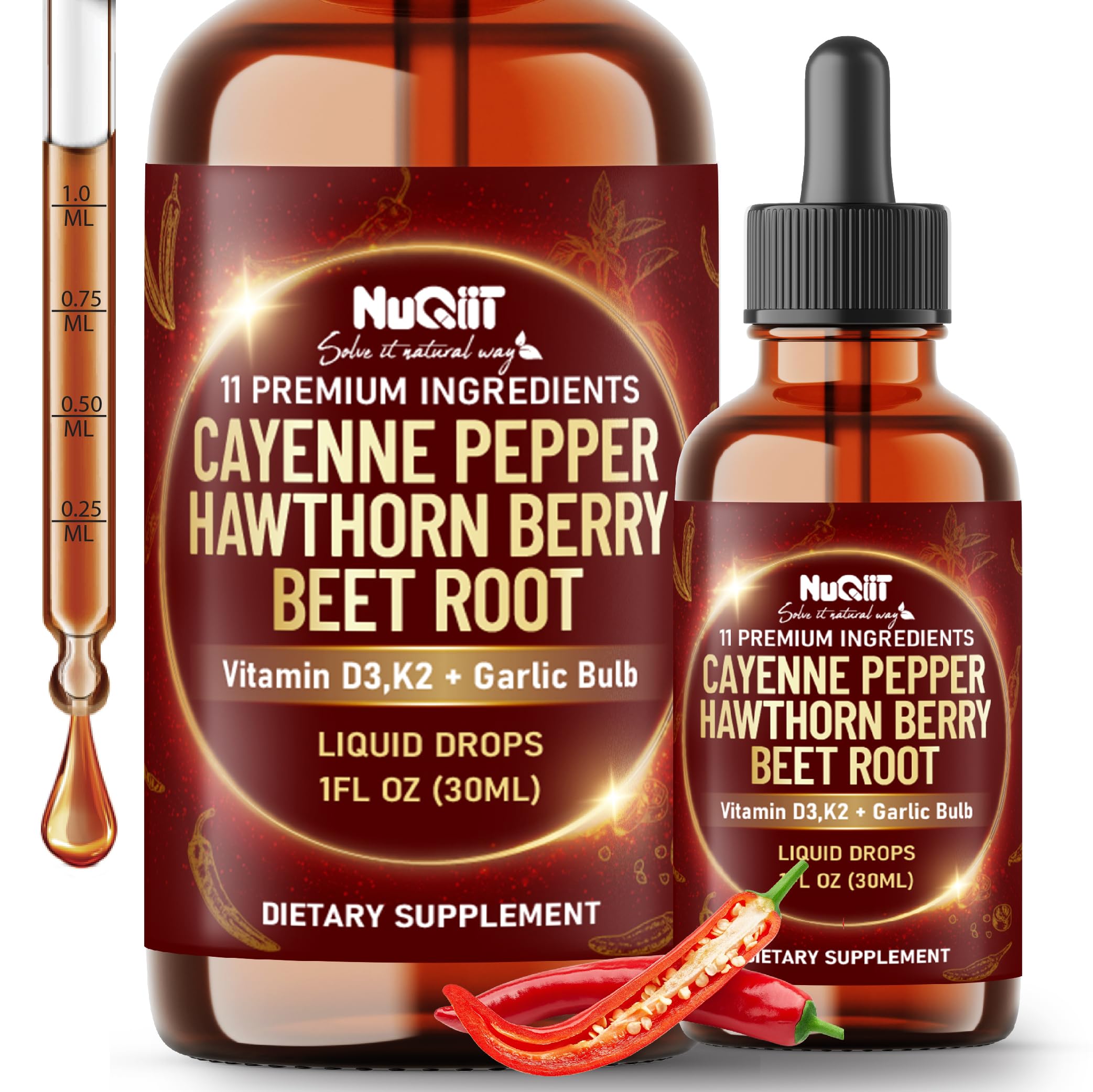 11in1 Cayenne Pepper Liquid Drops with Hawthorn Berry Beet Root Turmeric Ginger and More - 30ml Liquid Drops for 30Days