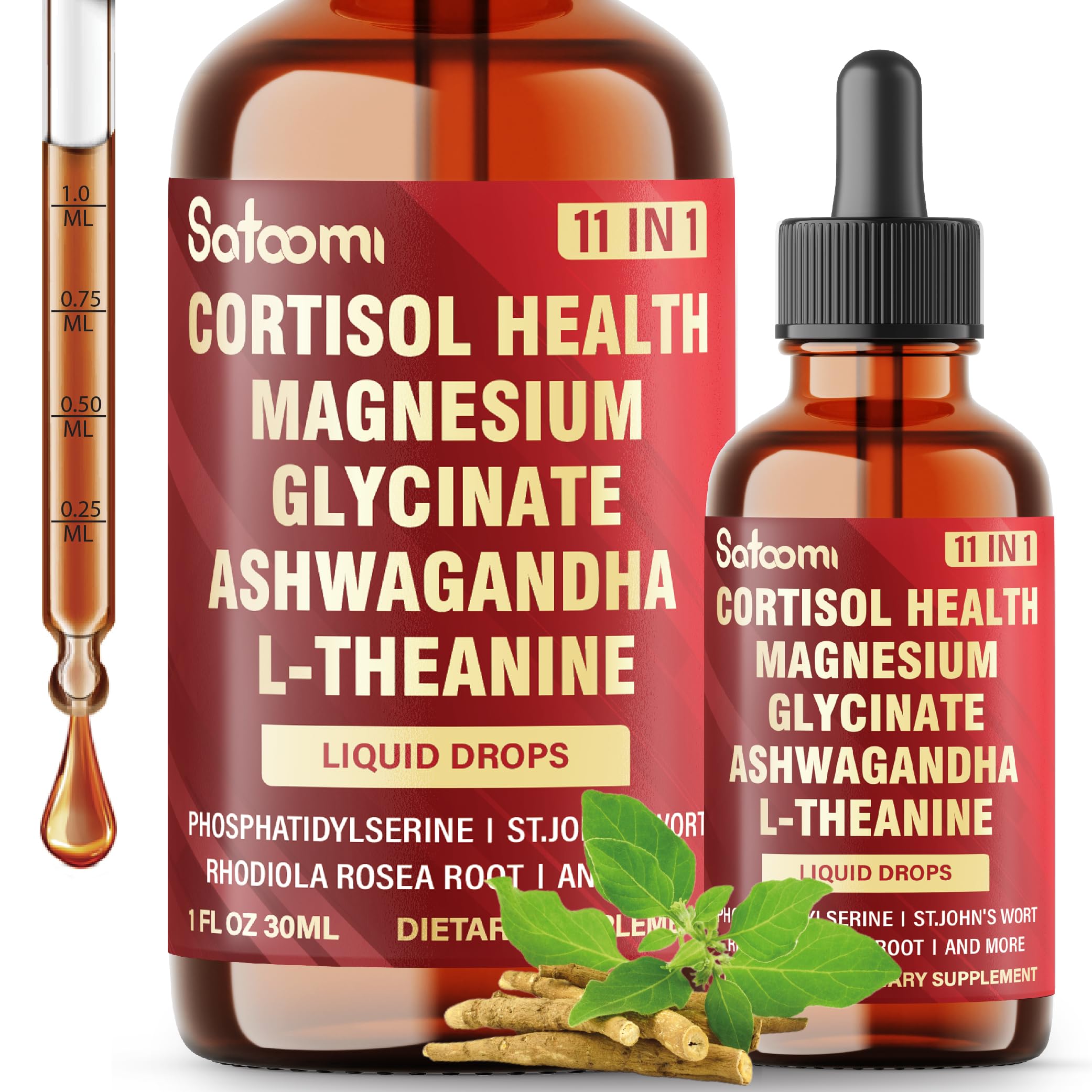 11in1 Cortisol Support Drops Liquid Supplement for Brain Health & Mood Balance & Rest Well - with Magnesium Glycinate Ashwagandha L-Theanine & Phosphatidylserine - 1 FL Oz - 30 Servings