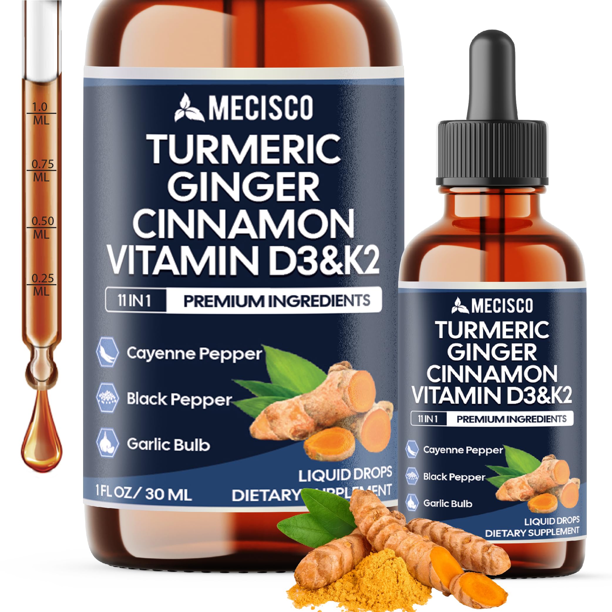 Mecisco Bottles are a comprehensive refund policy. Our mission is to offer our customers beneficial supplements of high quality. If, for any reason, you are dissatisfied with your order, please don't hesitate to reach out to us to request a refund. Your satisfaction is our top priority. Non-GMO, gluten-free, and made without wheat, soy, egg, sesame, dairy, preservatives, or artificial binders. Each bottle provides a full month supply, easy to take directly or mix with your favorite drink. Take 1ml of Liquid Turmeric per day. 11in1.