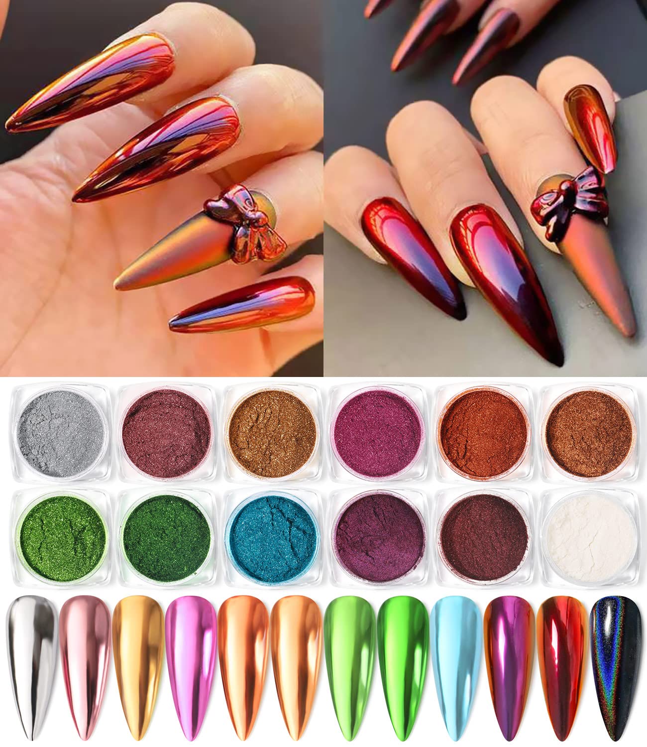6er Neon Pigment Powder Set Smoky Nails Pink Red Yellow Blue Purple Green Nailart