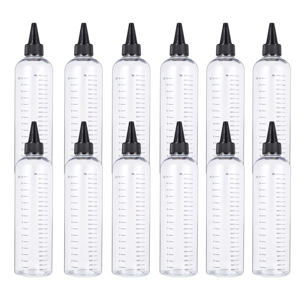 12 pièces Lot de Bouteilles Transparentes à Presser avec Échelle Graduée Outil de Mesure pour Salon de Coiffure Flacon Distributeur pour Liquide de et Soins Capillaires Adapté
