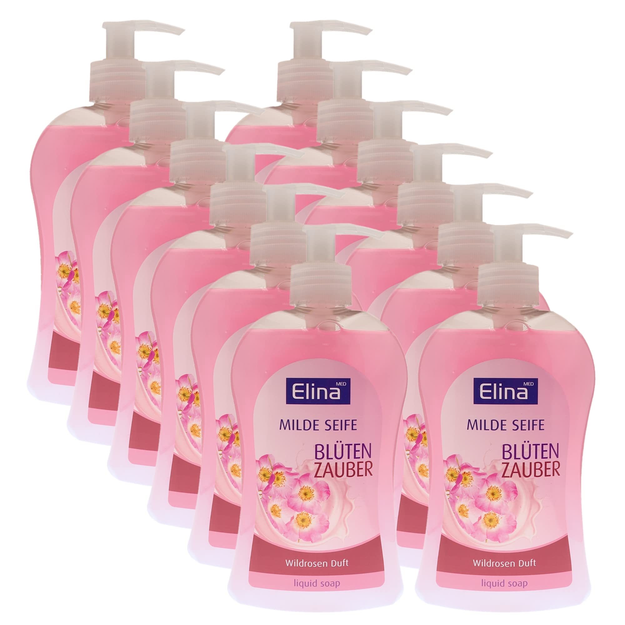 12 x Elina med - Seife/Flüssigseife - Blüten Zauber - Mit Wildrosen Duft (12 x 500 ml) 12 stück (1er Pack) Wildrosen