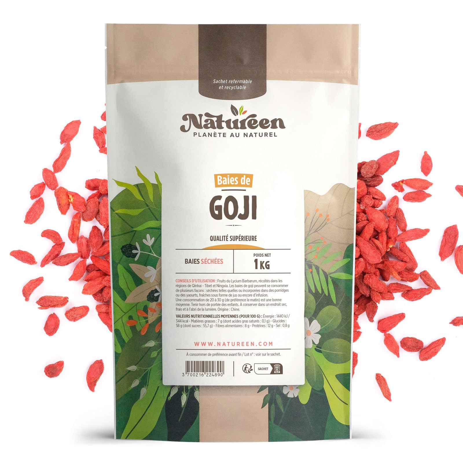 Goji berries grow on a shrub, the common wolfberry (Lycium vulgare), which can reach 1 to 3 meters in height. This very hardy deciduous shrub has numerous flexible, drooping, and slightly thorny branches. The leaves are solitary and measure 2 to 3 cm long. The flower is borne on a pedicel, and flowering occurs between June and September. The fruit is a more or less red or orange, oblong berry that resembles an elongated cherry. It ripens between August and October. INGREDIENTS Dried goji berries: 500 g INSTRUCTIONS FOR USE Take 20 to 40 grams, preferably in the morning. Goji can be eaten plain (very pleasant), mixed with yogurt, in a drink, or added to various hot dishes. SAFETY WARNING Goji berries should not be consumed by pregnant or breastfeeding women, as they have a stimulating effect on the uterus. Children under 7 years of age should not consume goji berries. See moreTake 20 to 40 grams, preferably in the morning. Goji berries can be eaten plain (very pleasant), mixed with yogurt, in a drink, or added to various hot dishes. Two 500g resealable, UV-resistant zip-lock bags. 1 kg Greenfood Goji Berries from Ningxia (Lycium Barbarum).Baies de Goji Greenfood origine Ningxia (Lycium Barbarum) 500 gr x 2DESCRIPTION DU PRODUIT DESCRIPTION DU PRODUIT Les baies de goji poussent sur un arbuste, le lyciet commun, pouvant atteindre de 1 à 3 m de hauteur. C'est un arbuste caduc très rustique qui possède de nombreux rameaux flexueux, pendants et légèrement épineux. Les feuilles sont solitaires et mesurent de 2 à 3 cm de long. La fleur est portée par un pédicelle, la floraison a lieu entre juin et septembre. Le fruit est une baie plus ou moins rouge ou orangée, de forme oblongue, qui ressemble à une cerise allongée. Il mûrit entre août et octobre. INGRÉDIENTS Baies de goji séchées : 500 gr MODE D'EMPLOI Prendre 20 à 40 grammes, de préférence le matin. Le Goji peut être consommé nature (très agréable), mélangé avec un yaourt, dans une boisson ou ajouté à différents plats chauds. AVERTISSEMENT DE SÉCURITÉ Les baies de goji ne doivent pas être consommées par les femmes enceintes ou qui allaitent, car elles ont une action stimulante sur l'utérus. Les enfants de moins de 7 ans ne doivent pas consommer de goji. Voir plusPrendre 20 à 40 grammes, de préférence le matin. Le Goji peut être consommé nature (très agréable), mélangé avec un yaourt, dans une boisson ou ajouté à différents plats chauds. 2 sachets ZIP de 500 gr anti-uv et refermables. 1 Kg Baies de Goji Greenfood origine Ningxia (Lycium Barbarum).