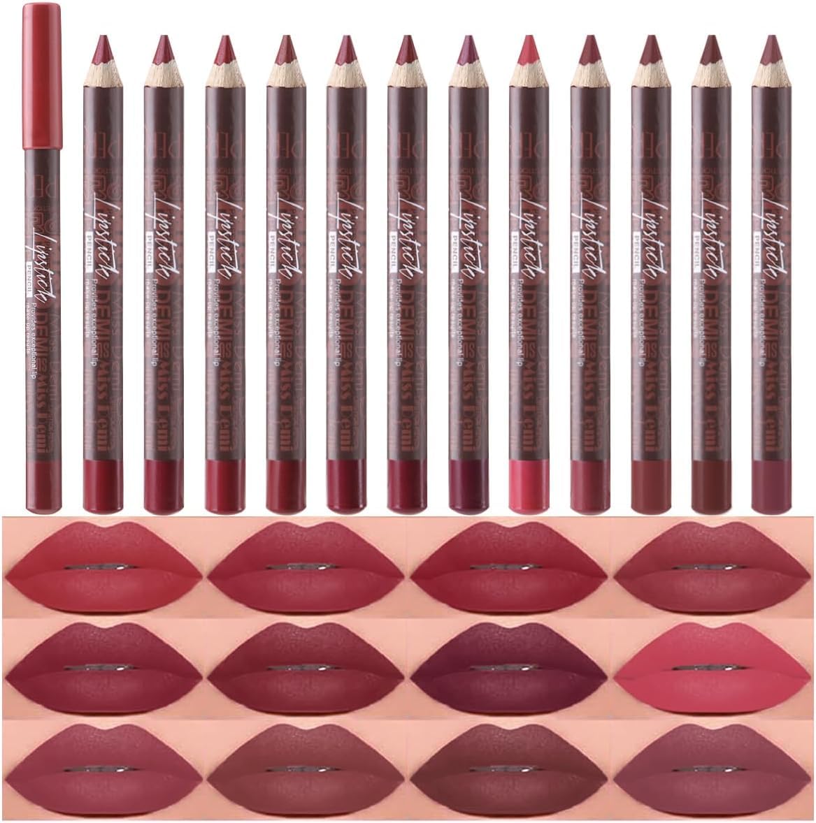 12Pcs Nude Matte Lip Liner Crayon Pencil Set, Thick 24 Hour Long Lasting Waterproof Lip Liner Pencil, Matte Lipstick and Lip Crayon Pen for Women (A Set)