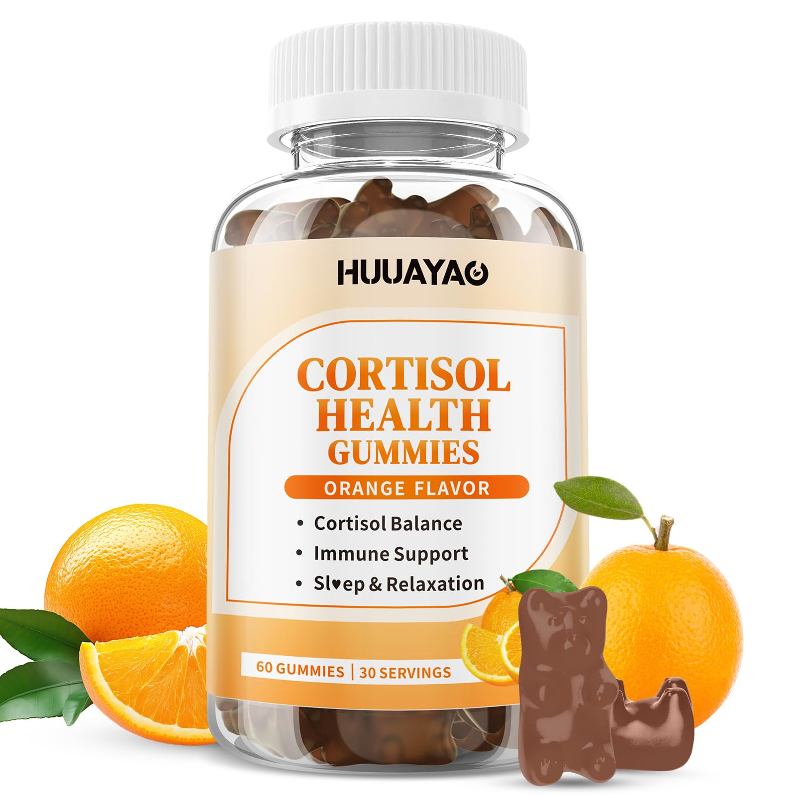 Health: Our women's cortisol supplements are made with non-GMO, gluten-free, and dairy-free ingredients, contain no artificial additives, fillers, or preservatives, comply with GMP standards, and have passed laboratory testing. Natural Orange Flavor: Cortisol supplements gummies for women feature a natural orange flavor, offering a tasty and enjoyable way to take your daily supplements. Unlike hard-to-swallow pills or powders, these gummies are non-sticky, non-bitter. Boost Energy Cognitive Support: These cortisol gummies for women provide sustained energy and cognitive support through Phosphatidylserine and Vitamin B6. Phosphatidylserine, derived from sunflower lecithin, is an important brain nutrient that supports cognitive and brain health. Vitamin B6 promotes nervous system health and energy levels. Sleep and Relaxation Support: Magnesium can aid relaxation and sleep. L-Theanine is known for its calming effects, and Rhodiola Rosea Root is revered for its soothing properties, helping to promote calm and physical energy levels. These ingredients are combined in optimal proportions to support better Zzz quality. 15-In-1 Complex Cortisol Gummies: Our cortisol gummies feature 15 high-quality ingredients, designed to support a comprehensive range of cortisol level management and overall well-being. The premium formula includes Magnesium Glycinate, Ashwagandha, L-theanine, Phosphatidylserine, Rhodiola rosea, Black Pepper, and Vitamins C, D3, and B6, among others. Take 2 Cortisol Supplements Gummies daily to help you find inner peace during your busy day.