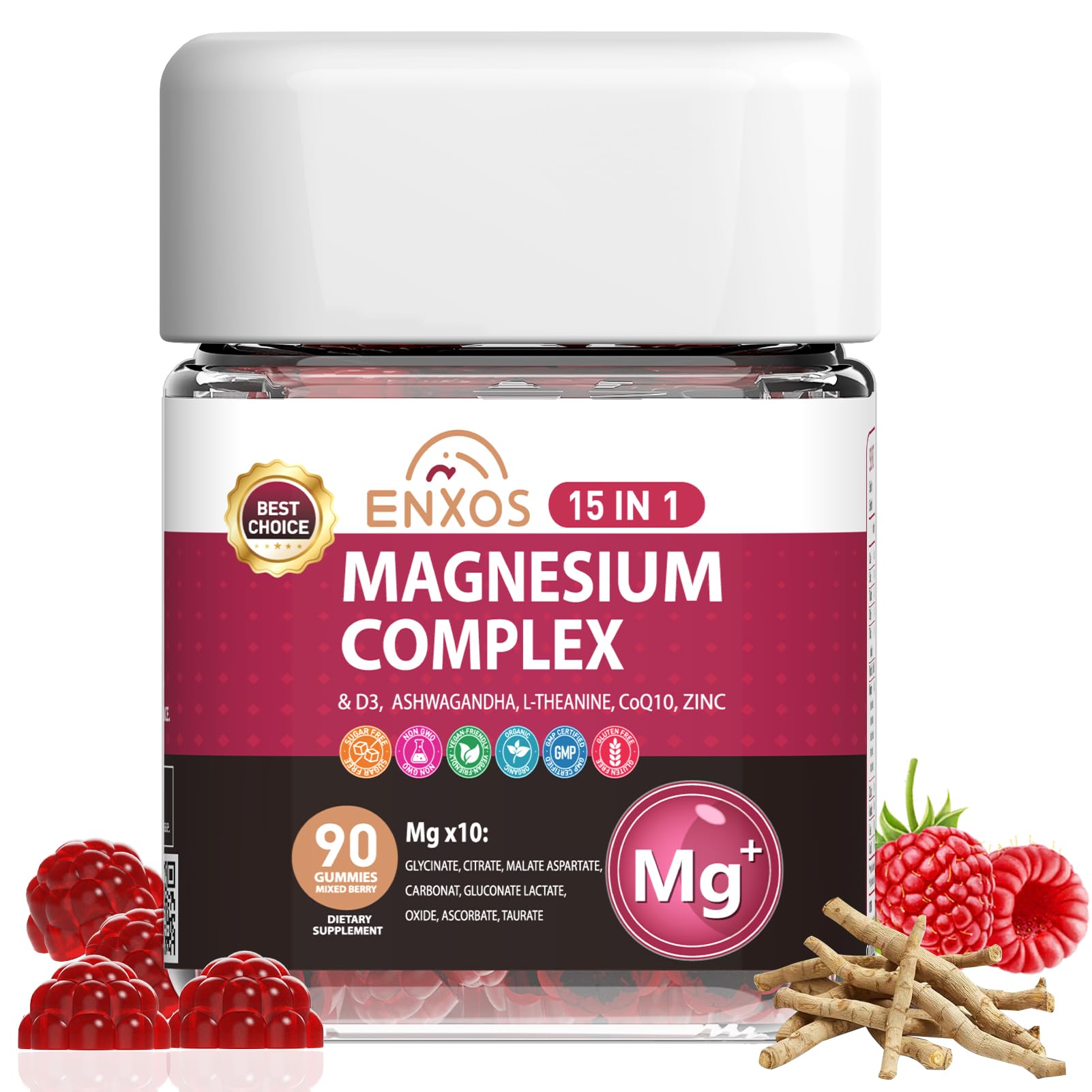 15 In 1 Soft Gummies 10types Magnesium Complex, Ashwagandha, L-Theanine, Vitamin D3, CoQ10 & Zinc