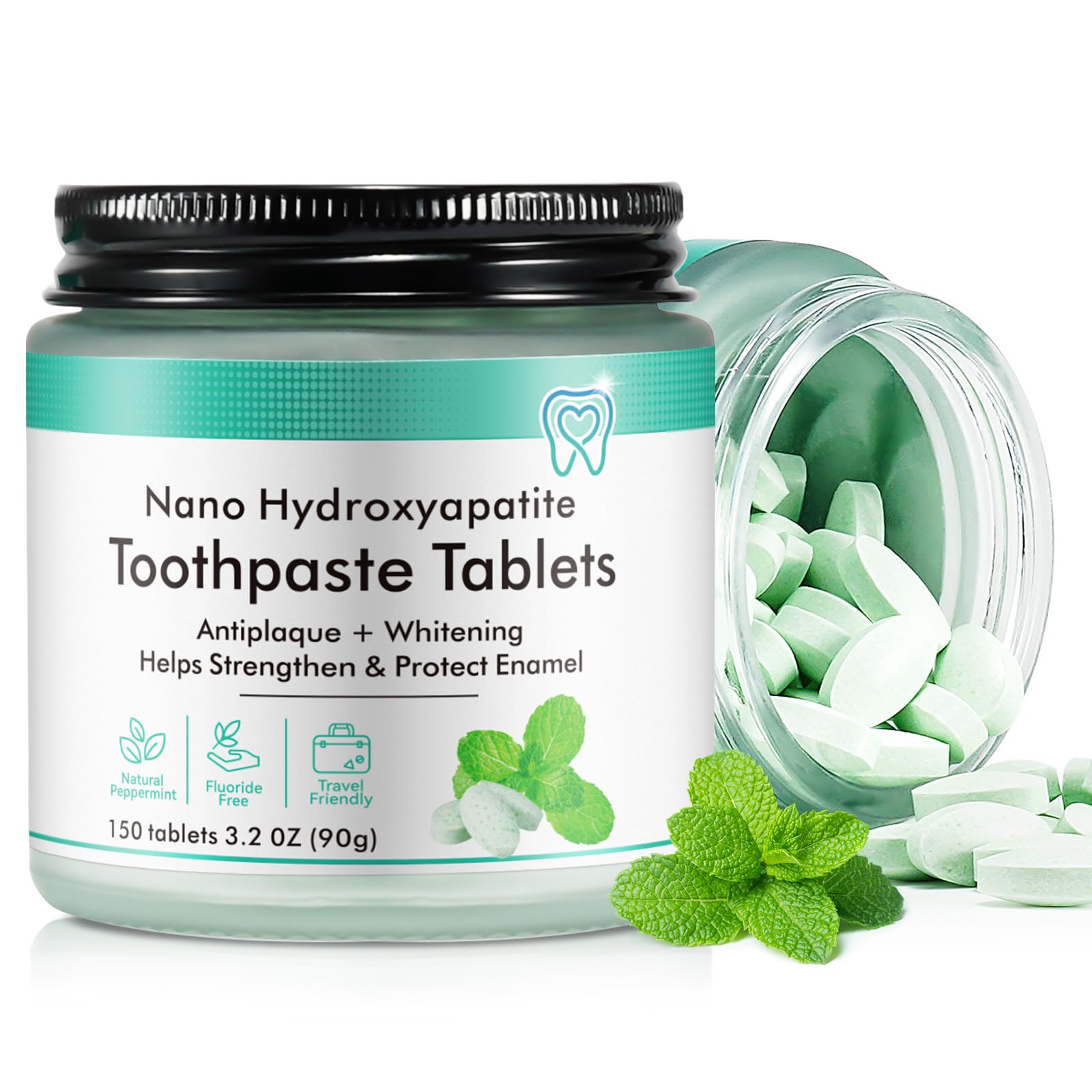 150 Tablets Chewable Toothpaste Tablets Sensitive Toothpaste Tablets Peppermint Flavored Strengthen Teeth Flouride & Plastic Free Nano Hydroxyapatite Clean Effectively