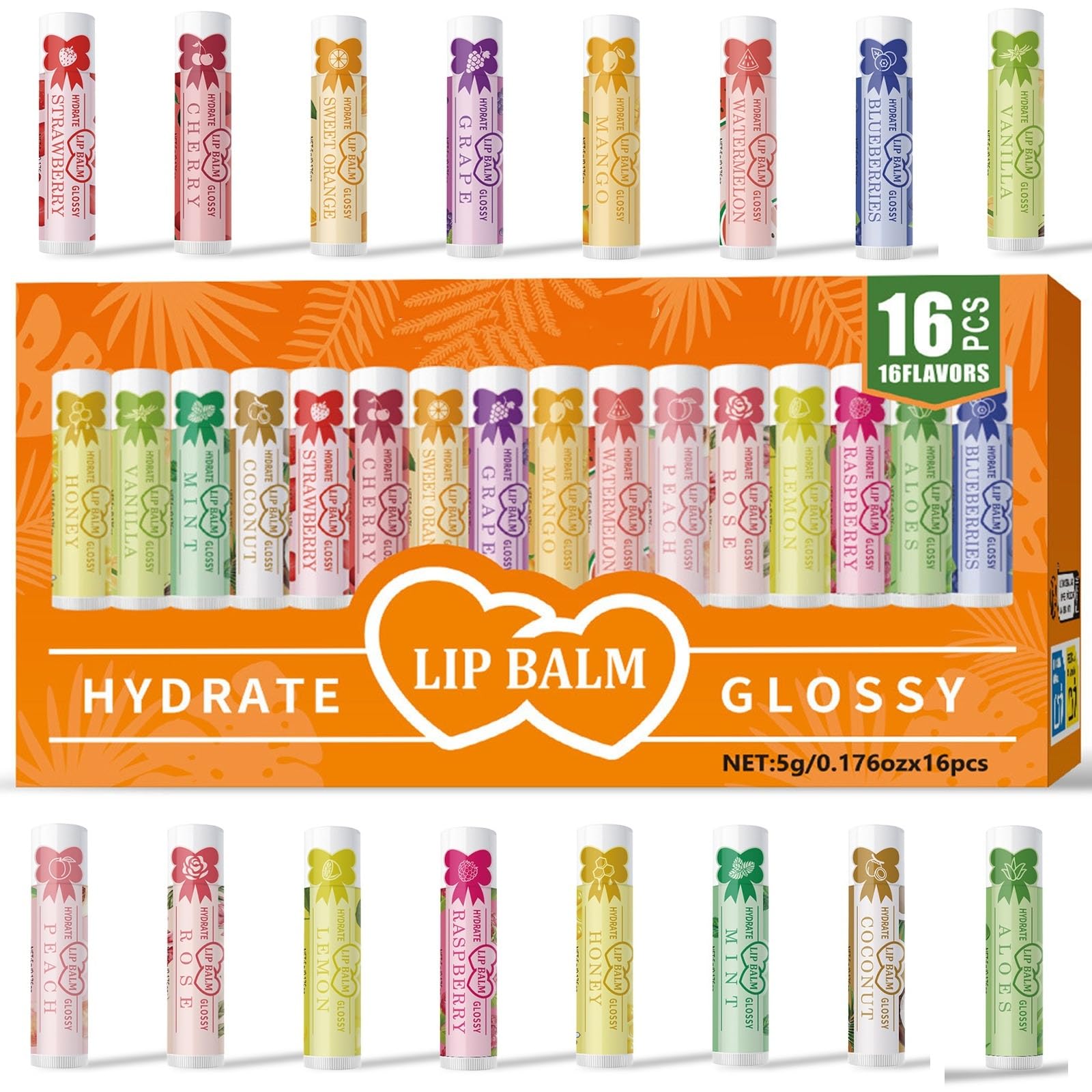 16 Pack Lip Balm Natural Lip Balm Bulk - Moisturizing Dry Cracked Lips Lip Care Product Moisturizing Lip Balms for dry cracked lips - 16 Flavors