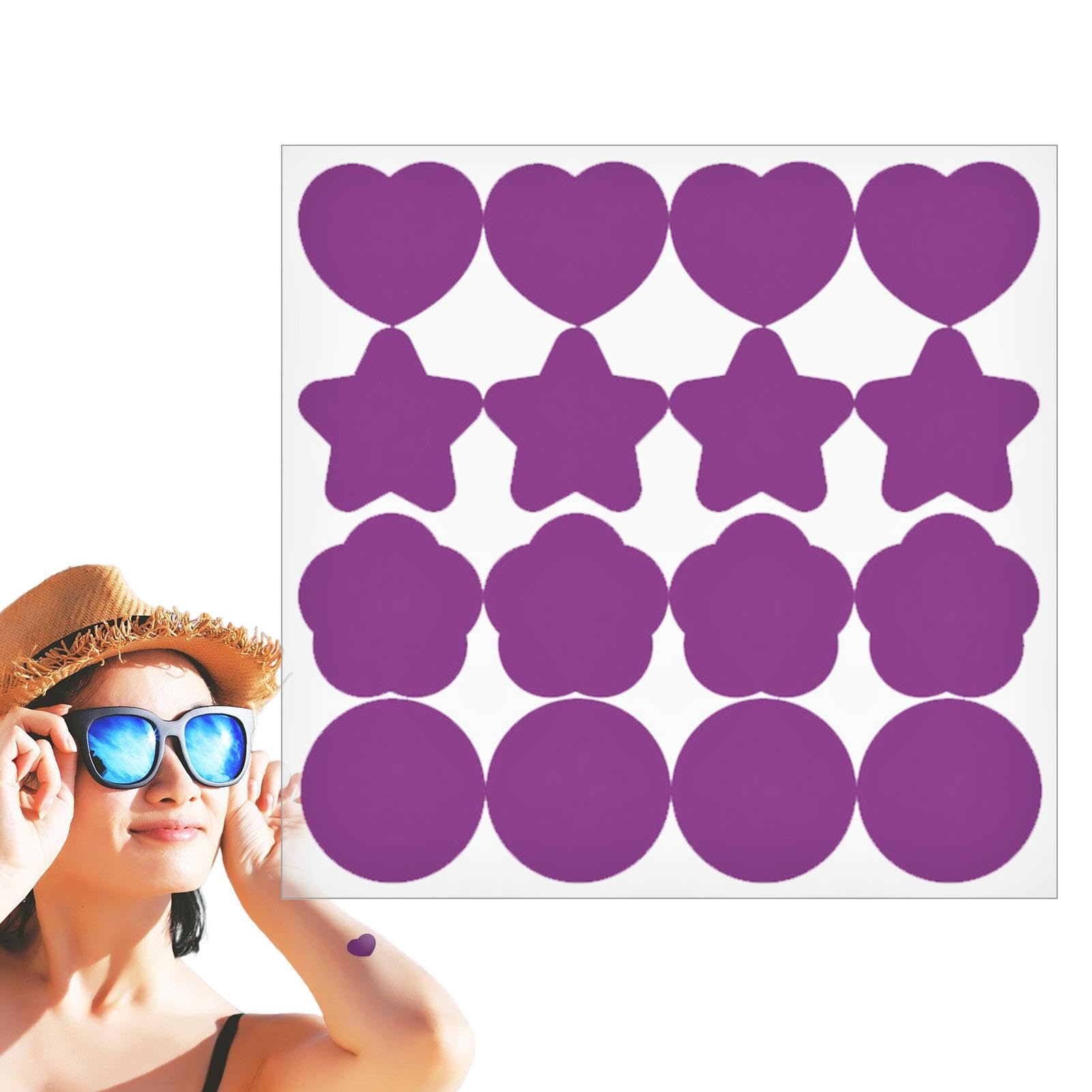 16 Patch - Detection Test Stickers UV Sticker Waterproof Sunscreen Patches | Testing Color Changing Stickers For Beach Swimming For Summer Beach Kids & Adults (Transparent Purple)