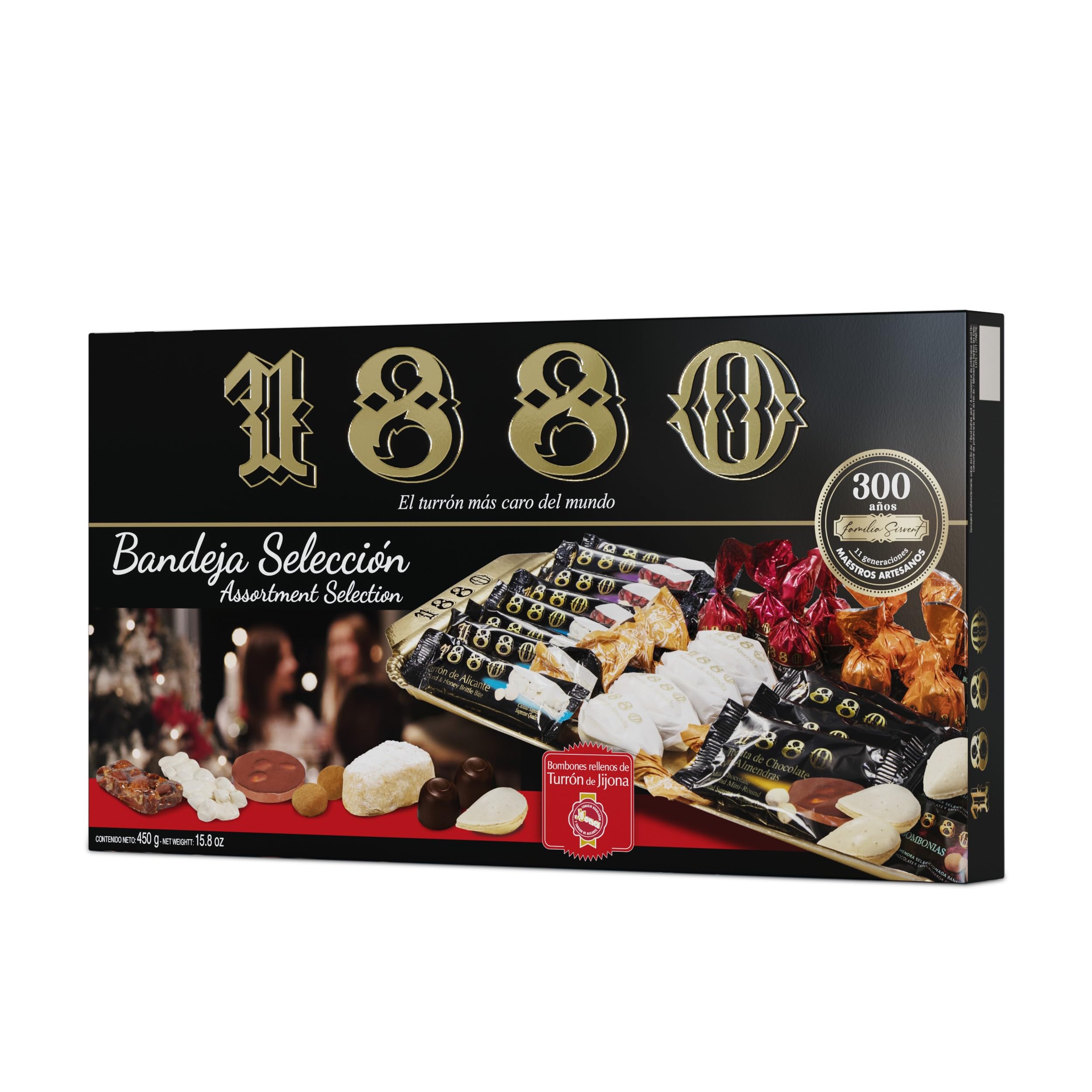: The 1880 Selection Tray from Confectionary Holding, voted PRODUCT OF THE YEAR 2016 by consumers, is a major innovation award winner. In just one year, the 1880 Selection Tray has become one of the undisputed stars of Spanish Christmas. It consists of over 35 individually wrapped portions presented on a ready-to-use tray of 1880 pieces, which also improves consumption and product preservation. It features 35 traditional nougats whose most characteristic ingredients are almonds, cocoa, chocolate, and butter. The 1880 Selection Tray is ready to be placed on your table. It improves consumption and product preservation. Enjoy our traditional sweets and nougats anytime, anywhere. The authentic taste of almond directly on your table. Visit our store and discover our wide range of products. The 1880 Selection Tray was voted Product of the Year in 2016 by consumers and received the Grand Prize for Innovation. It is one of the undisputed stars of Spanish Christmas. Ingredients: ALMOND (67 ), COCOA, CHOCOLATE (15 ) and BUTTER (5 ). Instructions: Consume directly from the packaging. See moreFAMILY FUN - Enjoy our traditional sweets and nougats anytime, anywhere. The authentic taste of almonds, right on your table. Visit our store and discover our wide range of products. READY TO EAT - The 1880 Selection Tray is ready to be placed on your table. It enhances both the enjoyment and preservation of the product. A DISTINCTIVE PRODUCT - The 1880 Selection Tray was voted Product of the Year in 2016 by consumers and received the Grand Prize for Innovation. It's one of the undisputed stars of Spanish Christmas. INGREDIENTS - Composed of 35 traditional nougats whose most characteristic ingredients are almonds, cocoa, chocolate, and butter. CONTENTS - Includes more than 35 individually wrapped portions presented on a tray perfect for the table.Description du produit Le plateau de sélection 1880 de Confectionary Holding, élu PRODUIT DE L'ANNÉE 2016 par les consommateurs, un grand prix de l'innovation. En un an seulement, le plateau de la sélection 1880 est devenu l'une des stars incontestées du Noël espagnol. Il est composé de plus de 35 portions emballées individuellement et présentées sur un plateau de 1880 unités prêt à poser sur la table (READY TO USE), ce qui améliore également la consommation et la conservation du produit. Composé de 35 nougats traditionnels dont les ingrédients les plus caractéristiques sont les amandes, le cacao, le chocolat et le beurre. Le plateau de sélection 1880 est prêt à être posé sur votre table. Il améliore la consommation et la conservation du produit.Savourez nos bonbons et nougats traditionnels à tout moment et en tout lieu. Le goût authentique de l'amande directement sur votre table. Visitez notre mag et découvrez notre large gamme de produits. Le plateau de sélection 1880 a été élu produit de l'année en 2016 par les consommateurs et a reçu le grand prix de l'innovation. C'est l'une des stars incontestées du Noël espagnol. Ingrédients AMANDE (67 ), le CACAO, le CHOCOLAT (15 ) et le BEURRE (5 ) P.when('A').execute(function(A) { A.on('a:expander:toggle_description:toggle:collapse', function(data) { window.scroll(0, data.expander. expander[0].offsetTop-100) }) }) Mode d'emploi À consommer directement à partir de l'emballage. Voir plusPLAISIR EN FAMILLE - Savourez nos bonbons et nougats traditionnels à tout moment et en tout lieu. Le goût authentique de l'amande directement sur votre table. Visitez notre mag et découvrez notre large gamme de produits. PRÊT À MANGER - Le plateau de sélection 1880 est prêt à être posé sur votre table. Il améliore la consommation et la conservation du produit. PRODUIT DIFFÉRENCIANT - Le plateau de sélection 1880 a été élu produit de l'année en 2016 par les consommateurs et a reçu le grand prix de l'innovation. C'est l'une des stars incontestées du Noël espagnol. INGRÉDIENTS - Composé de 35 nougats traditionnels dont les ingrédients les plus caractéristiques sont les amandes, le cacao, le chocolat et le beurre. CONTENU - Comprend plus de 35 portions emballées individuellement présentées sur un plateau parfait pour être placé sur la table.1880 - Sélection Plateau en boîte, Le nougat le plus cher du monde, Sélection de Noël, Qualité Suprême, Douceur de Noël typique, Recette Artisanale, Prêt à Servir, 450g