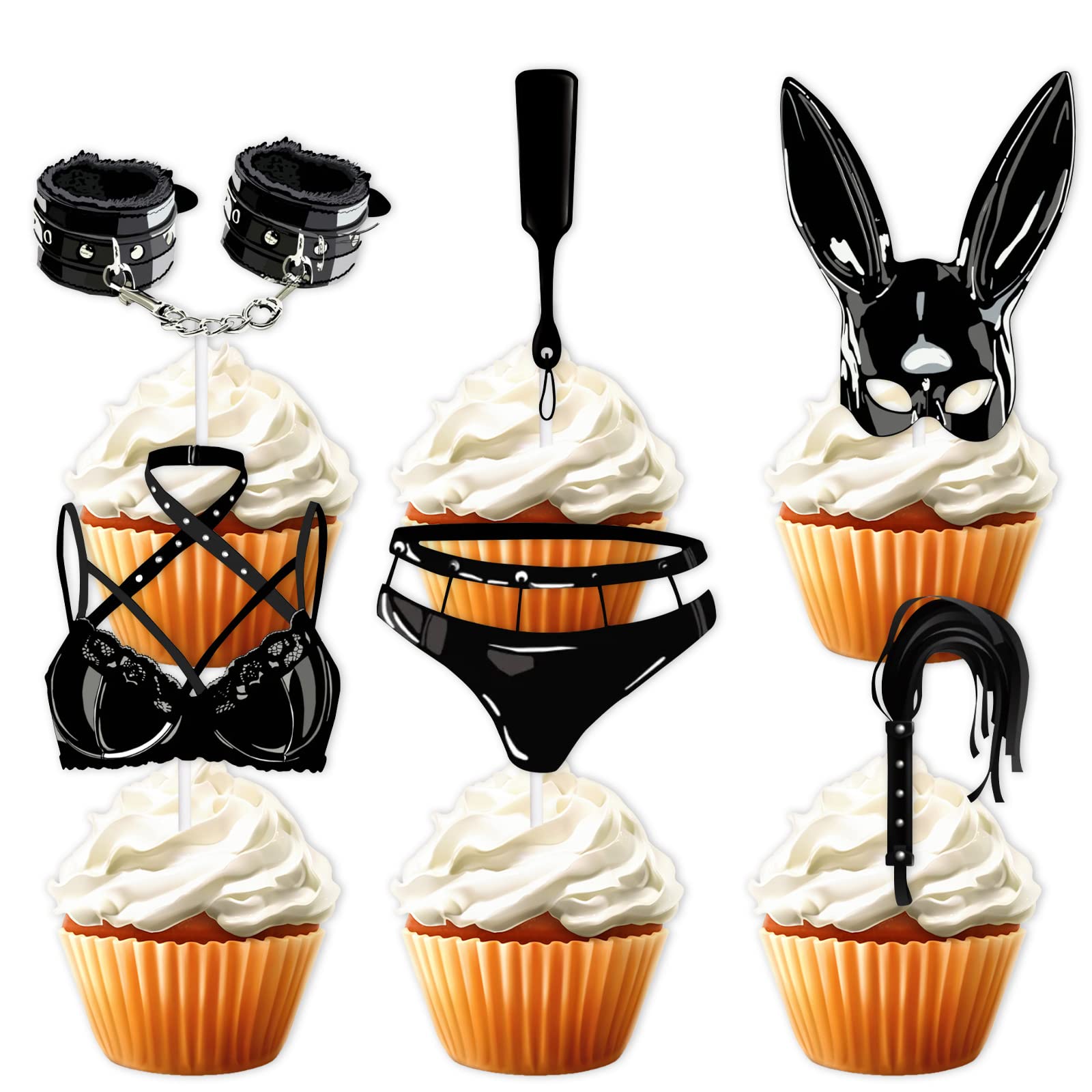 18pcs Black Glitter Dessert Cupcake Topper for Makeup Night Out Hen Movie Party Theme Decor Supplies Girl Woman Lady Birthday Bachelorette Bridal Shower Party Decoration