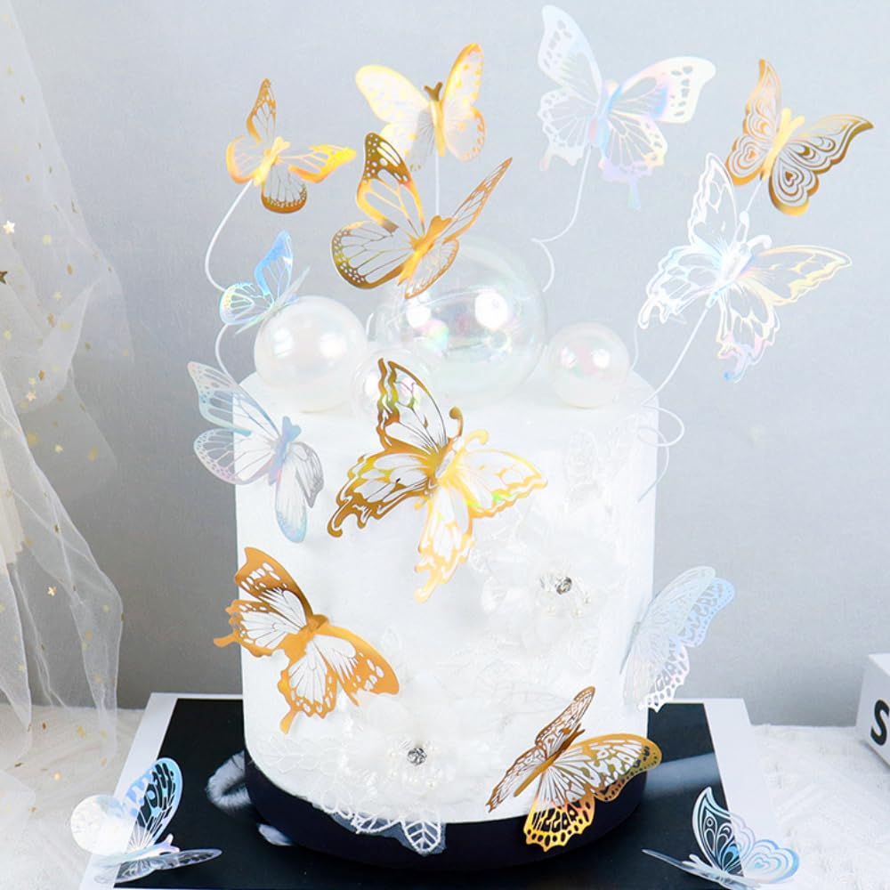 Butterfly Cake Decorations, 3D Butterfly Cake Topper, perfect to create unique and unforgettable cake decorations. Butterfly Cake Decorations, Gold Butterflies for Cakes, 3D Butterfly Cupcake Topper, Butterfly Cake Topper, Butterfly Birthday Decorations, Gold Butterflies, Butterflies for Cakes, Gold Butterfly Cake Decorations, Cake Toppers for Women, Cupcake Toppers, Cake Decorations,Wedding Cake Decorations. Designed for one side only, the other side is white. For decoration purposes only, this is not edible and please DO NOT use in the oven or microwave. Suitable occasion: Our White colorful and Gold Butterfly cake topper kit is suitable for cake decorations such as birthday cakes, wedding cakes, bridal cakes, baby shower cakes, cupcake decoration and so on. 3D hollow design: Our 3D butterfly cake topper is easy to use and assemble, this butterfly cake decoration set includes iron wires, which helps to create a more realistic, complete and three-dimensional effect that can be adjusted according to customer's preferences to create unique and charming designs. Special design: What better way to celebrate a birthday than with a gorgeous butterfly cake decoration. This assorted butterfly cake decorating kit design is ideal for decorating cupcakes, cakes, party walls and all the decorating ideas you desire. Material: Our butterfly cake topper is made of high-quality material that makes it durable and flexible. Includes transparent glue that allows you to easily create a 3D effect on the cake decoration, also suitable for wall background decorations. Package include: 18 mixed size of 3D butterfly topper decorations (9 of each color). Also includes iron wire and adhesive to attach each butterfly to attach each butterfly. Size package: 8.6*8.6 inches.