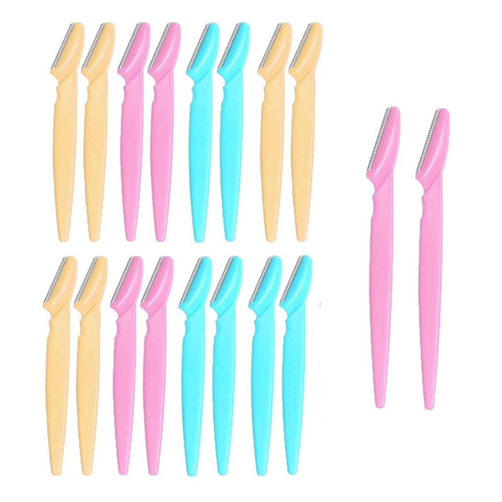 - Package: including 18 pieces - The eyebrow razor is made of stainless steel and provided with a safety net to protect your delicate and sensitive skin. - For safety, the eyebrow razor is provided with a safety cap, so that it can be safely stowed in her make -up bag. - This eyebrow razor not only helps you trim your eyebrows, but also removes body hair (peach flaum on the chin, upper lip hair, lip hair and chop hair) and peel. - We recommend that you use for better hygiene at different colored eyebrow razors at different parts of the body - we recommend that you use different -colored eyebrow shavers at different parts of the body for better hygiene.- This eyebrow razor not only helps you trim your eyebrows, but also removes body hair (peach flaum on the chin, upper lip hair, lip hair and chop hair) and peel.- For safety, the eyebrow razor is provided with a safety cap, so that it can be safely stowed in her make -up bag.- The eyebrow razor is made of stainless steel and provided with a safety net to protect your delicate and sensitive skin.- Package: including 18 pieces. - Paket: inklusive 18 Stück - Der Augenbrauenrasierer ist aus rostfreiem Stahl gefertigt und mit einem Sicherheitsnetz versehen, um Ihre zarte und empfindliche Haut zu schützen. - Zur Sicherheit ist der Augenbrauenrasierer mit einer Sicherheitskappe versehen, so dass er sicher in Ihrer Schminktasche verstaut werden kann. - Dieser Augenbrauenrasierer hilft Ihnen nicht nur beim Trimmen Ihrer Augenbrauen, sondern entfernt auch Körperhaare (Pfirsichflaum am Kinn, Oberlippenhaar, Lippenhaar und Kotelettenhaar) und peelt. - Wir empfehlen Ihnen, für eine bessere Hygiene verschiedenfarbige Augenbrauenrasierer an verschiedenen Körperstellen zu verwenden- Wir empfehlen Ihnen, für eine bessere Hygiene verschiedenfarbige Augenbrauenrasierer an verschiedenen Körperstellen zu verwenden. - Dieser Augenbrauenrasierer hilft Ihnen nicht nur beim Trimmen Ihrer Augenbrauen, sondern entfernt auch Körperhaare (Pfirsichflaum am Kinn, Oberlippenhaar, Lippenhaar und Kotelettenhaar) und peelt. - Zur Sicherheit ist der Augenbrauenrasierer mit einer Sicherheitskappe versehen, so dass er sicher in Ihrer Schminktasche verstaut werden kann. - Der Augenbrauenrasierer ist aus rostfreiem Stahl gefertigt und mit einem Sicherheitsnetz versehen, um Ihre zarte und empfindliche Haut zu schützen. - Paket: inklusive 18 Stück.18 Stück Augenbrauenrasierer, Gesichtshaarentferner, Augenbrauenrasierer-Trimmer für Damen und Herren