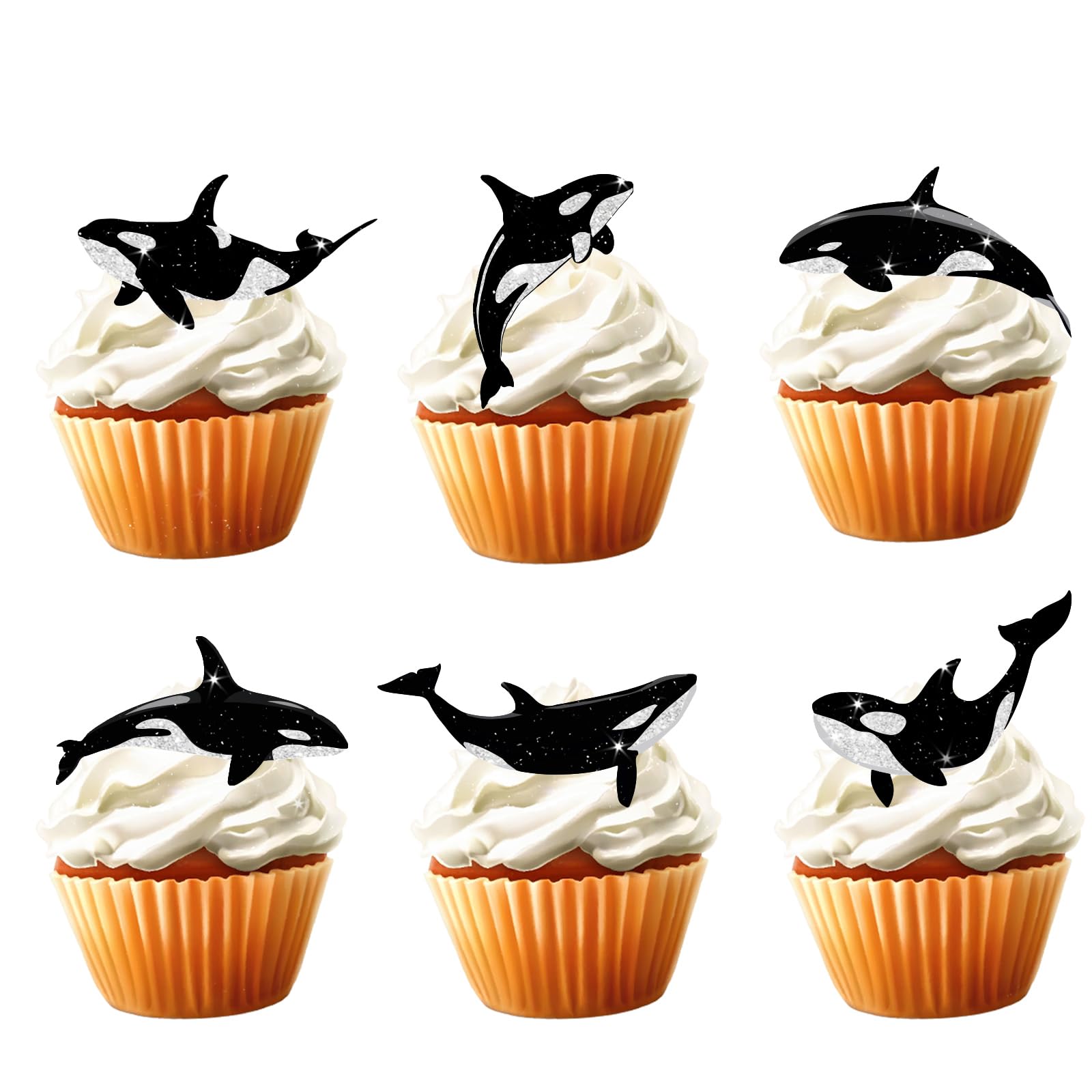 18pcs Killer Whales Cupcake Toppers for Boys Girls Baby Shower Fish Happy Birthday Cake Decor Under the Sea Ocean Themed Party Decorations Supplies