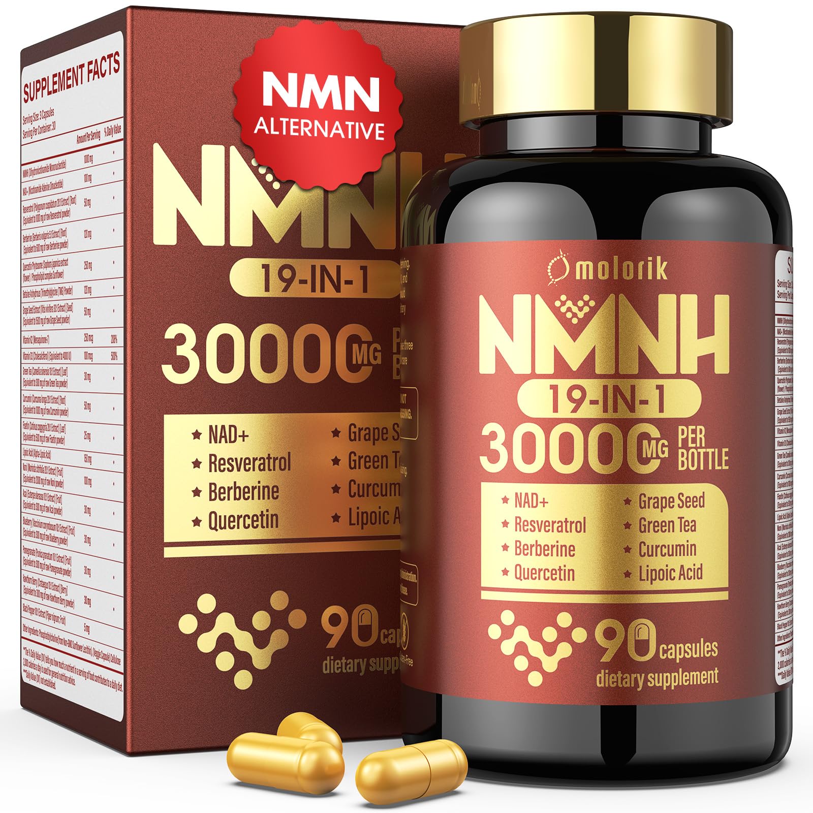 Pure Highly Bioavailable NAD Supplement – Our NMNH is non-GMO, gluten-free, and free of artificial colors, preservatives. Enhanced with black pepper for better absorption, each serving is crafted for maximum potency and bioavailability. Manufactured under strict quality standards, this formula guarantees purity, potency, and safety you can trust, offering peace of mind for those seeking premium nad supplements for women or men to support healthy energy, and graceful aging in daily life. NAD Supplements for Women Men – Invest in your well-being with every capsule! Each bottle contains 90 capsules of 1000mg NMNH per serving, providing a 20-day supply of comprehensive support. Our NMNH supplement is an easy addition to your daily routine—convenient to carry and swallow, just take 3 capsules daily to help support healthy NAD levels. Support overall well-being and energy levels at any age with this valuable supplement. Faster Absorption and Utilization – NMNH (Dihydronicotinamide Mononucleotide) offers superior bioavailability and efficiency in supporting NAD levels. NMNH may help increase NAD by 1.8 to 2.5 times, offering superior bioavailability compared to some precursors. It is efficiently metabolized for absorption and utilization. NAD levels may begin rising within 15 to 30 minutes, making NMNH a valuable supplement for supporting healthy aging, cellular energy, cognitive well-being, and immune health. 19-In-1 Advanced Formula – Our NAD resveratrol supplement features a powerful blend of 19 ingredients. This unique NMNH formula helps support healthy aging and cellular health with 100mg of NAD and 250mg of Quercetin. It supports brain health with antioxidants like resveratrol and lipoic acid, helping maintain cognitive well-being. The formula helps support immune health with vitamin D3, curcumin, and fisetin, while promoting overall heart health with berberine, vitamin K2, and pomegranate. 1000MG NMNH as an NAD Supplement – As we age, the levels of NAD in the body naturally decrease, which is associated with metabolic and cellular changes. NMNH, a novel ingredient, helps support NAD levels, supporting healthy metabolism and cellular function with age. The 1000mg pure organic NMNH supplement may contribute to healthy aging, skin health, cellular health, normal DNA maintenance, and energy production.