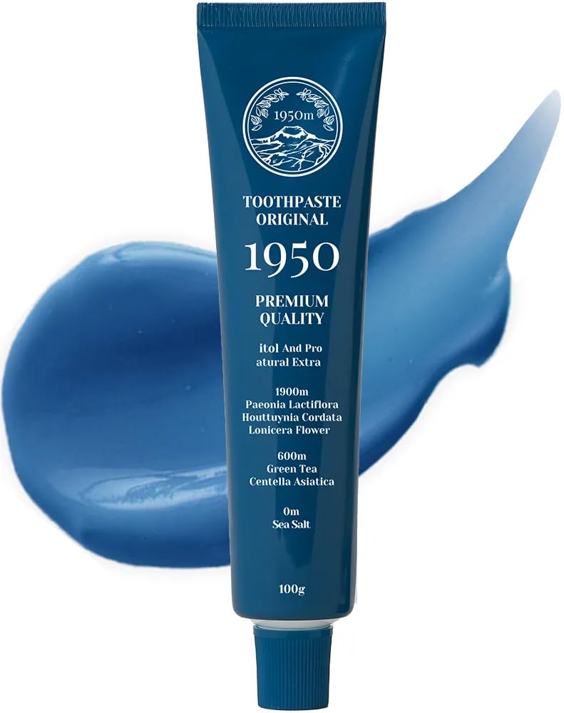 [Daily Care for the Whole Family] Brush gently after meals or at least twice daily to keep teeth clean, enamel strong, and gums healthy. Our 1950 Mineral Salt Blue Toothpaste is suitable for the whole family, providing a comfortable, refreshing brushing experience that supports naturally healthy teeth. [Natural Green Tea and Herbal Freshness] Formulated with Jeju Green Tea and 4 herbal extracts, this whitening toothpaste refreshes your mouth with every use. The naturally derived ingredients including plant-based surfactants, Xylitol, and Stevia help keep breath fresh while providing a soothing and comfortable brushing experience. [Gentle Silica and SLS Free] Made with premium plant-derived ingredients and dental-grade silica instead of harsh chemicals, this toothpaste gently removes plaque and surface stains while polishing teeth for a smooth, clean finish. Its SLS-free formula helps prevent discoloration without irritating gums, oral tissue, or sensitive enamel. [Remineralizing Hydroxyapatite Formula] Contains 10 Hydroxyapatite, a natural mineral that makes up 97 of tooth enamel and helps remineralize and protect it while supporting gum health. Its fluoride-free, biocompatible formula strengthens enamel, reduces sensitivity, and promotes lasting oral balance. [Jeju Mineral Gum and Enamel Care] With Jeju Lava Seawater, this toothpaste delivers a natural source of Magnesium, Potassium, Calcium, Manganese, Zinc, and Iron to help strengthen gums and enamel. The mineral-rich seawater is carefully purified and tested for safety, supporting long-term oral health.