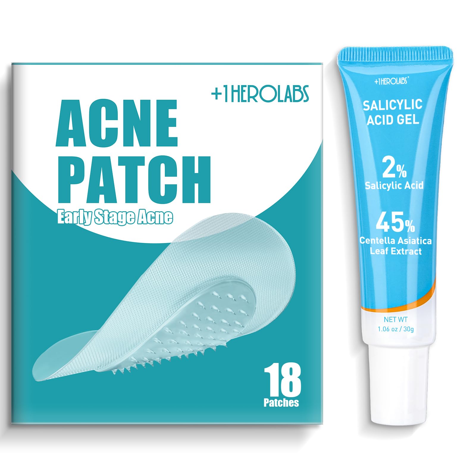 +1HEROLABS Acne Care Bundle: Hydrocolloid Pimple Patch for Deep Early and Hidden Blemishes + 2% Salicylic Acid Gel Serum for Pores & Oil