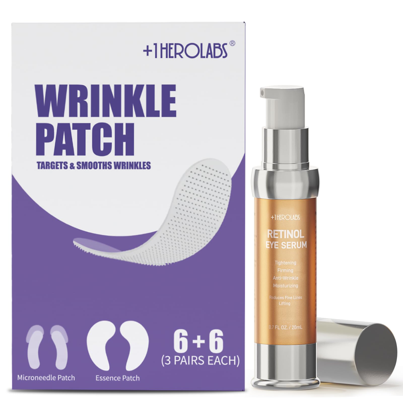 1Herolabs Eye Care Duo: Retinol Eye Cream Eye Patches for Wrinkles, Fine Lines Puffiness – Anti-Aging Set with Niacinamide, Hyaluronic Acid, Peptides Caffeine
