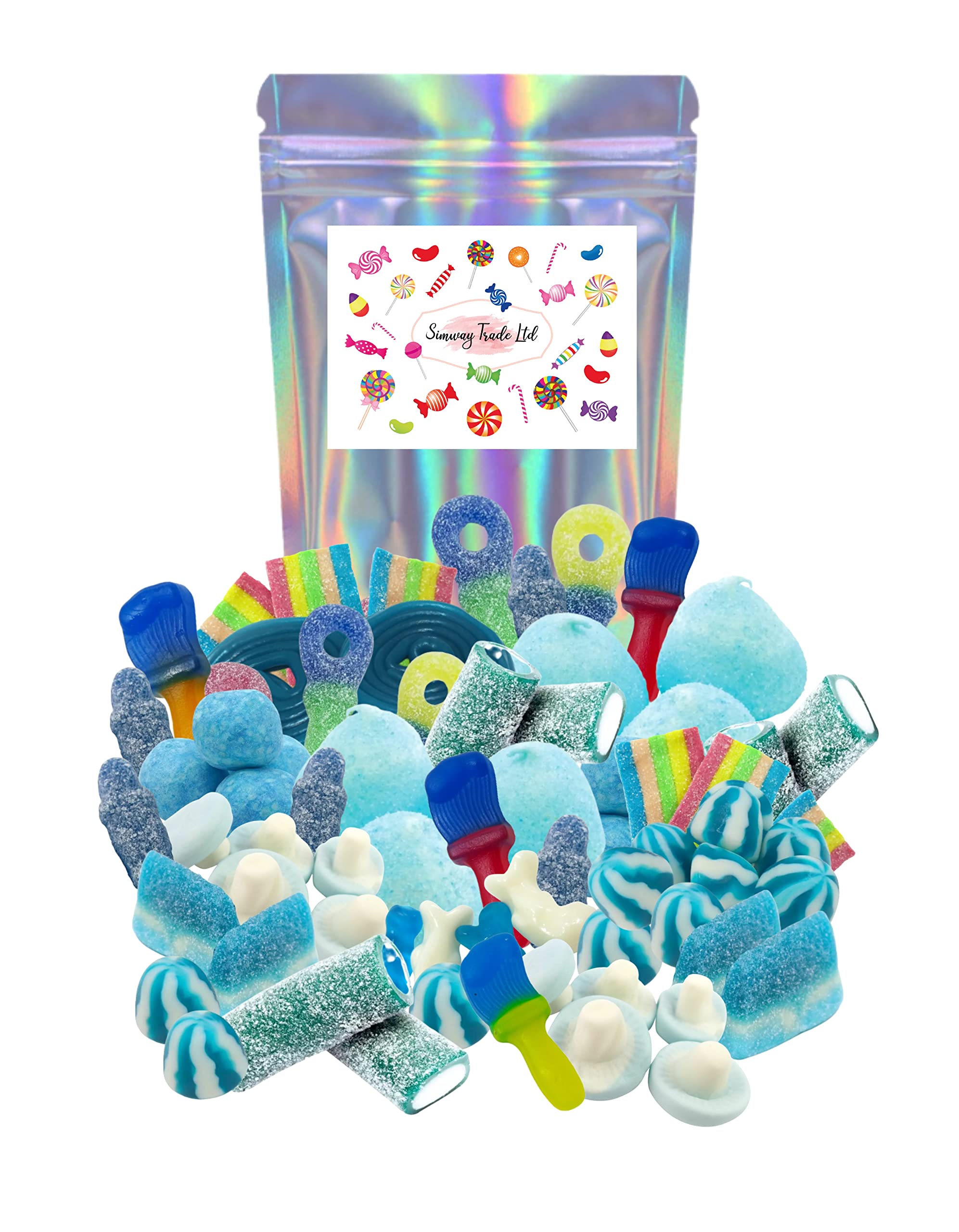 PRODUCT DESCRIPTION 1kg Blue Pick N Mix Sweets INGREDIENTS Please see images for a full list of ingredients