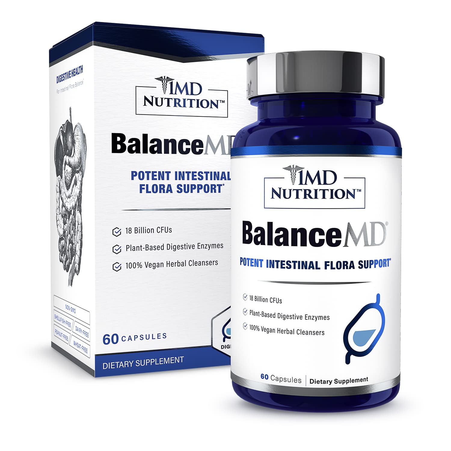 1MD Nutrition BalanceMD Vaginal Probiotics | Oregano & Caprylic Acid with Lactobacillus & Digestive Enzymes | Promotes Intestinal Flora Balance | 60 Capsules 60 Count (Pack of 1)
