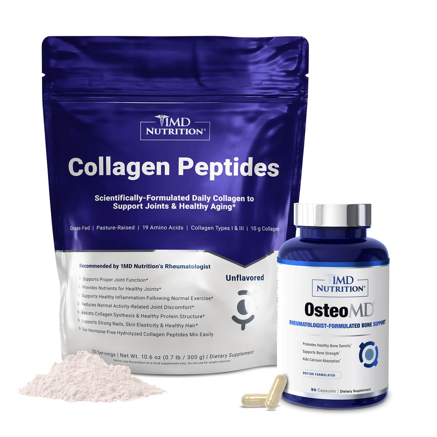 1MD Nutrition Bone Support Bundle - Includes Collagen Peptides and OsteoMD for Comprehensive Bone Support