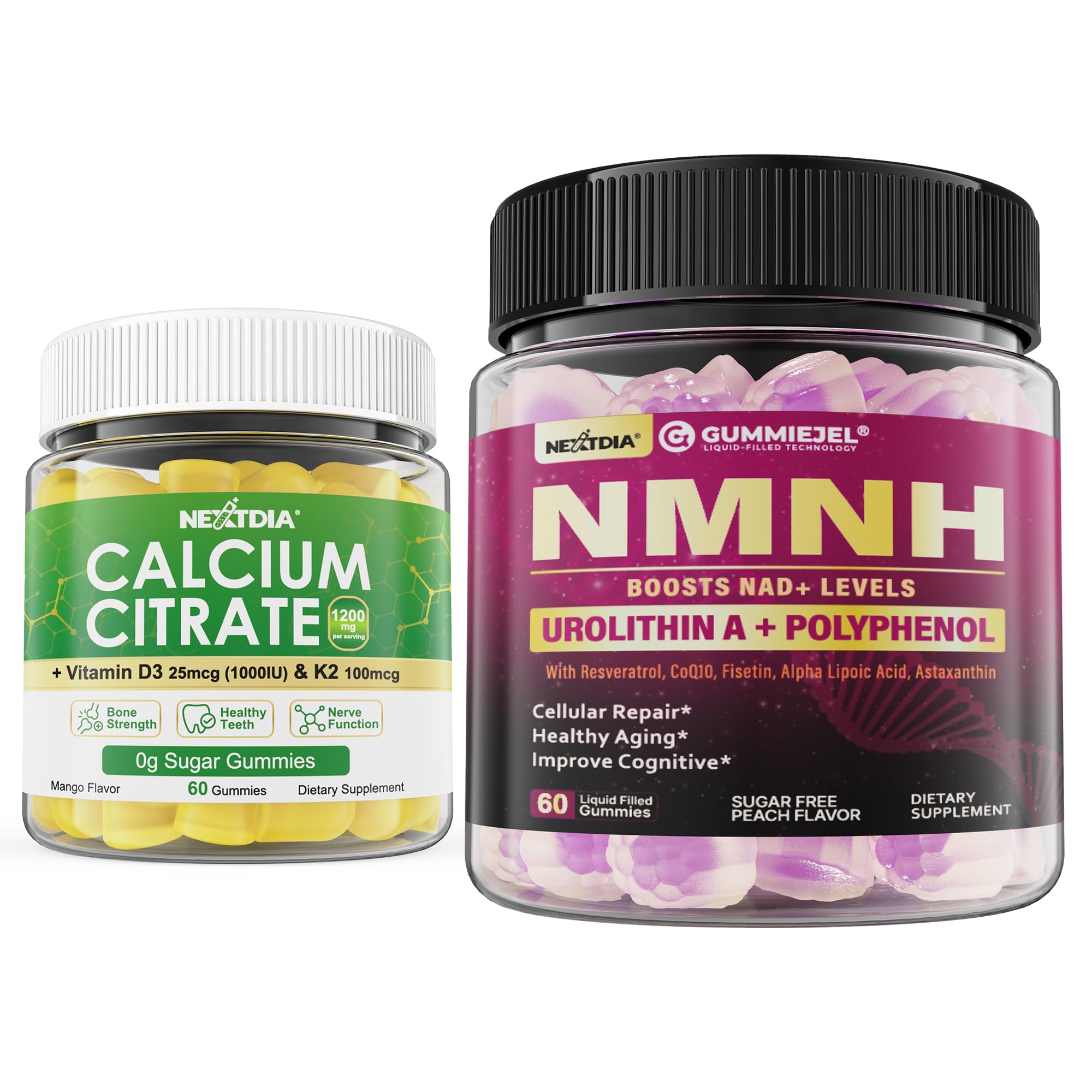 1P NAD+ Supplement for Women & Men NMNH Gummies + 2P Calcium Citrate Gummies 1200mg