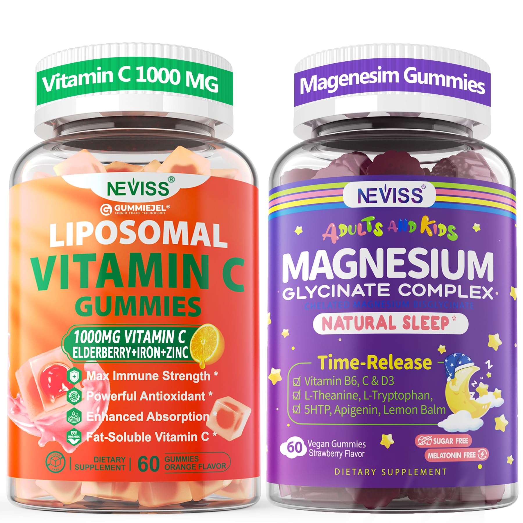 1Pack Magnesium Glycinate Gummies + 1Pack Liposomal Vitamin C 1000mg Gummies