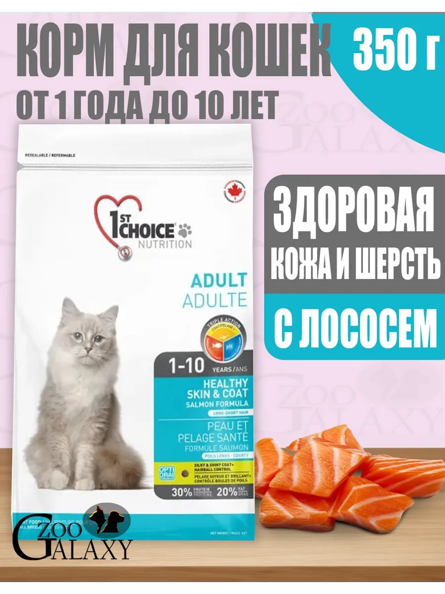 1st Choice Корм для кошек здоровая кожа и шерсть с лососем 350 г