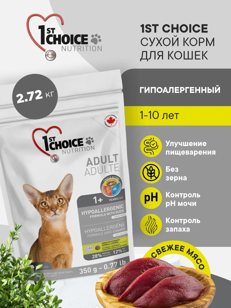 1st Choice Корм для кошек гипоаллергенный сухой Утка и картофель,2.72кг