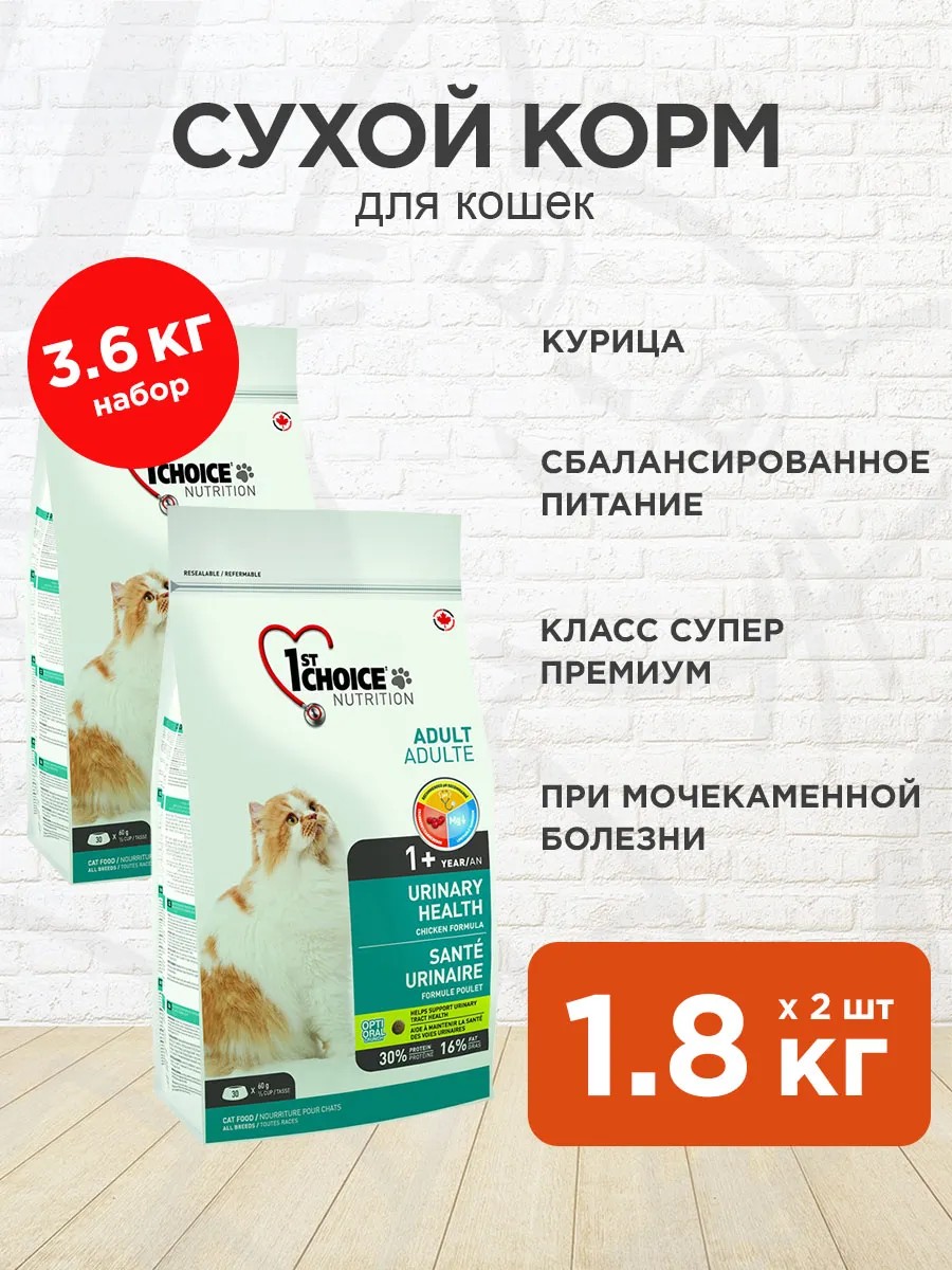 1st Choice Корм сухой при мочекаменной болезни кошек курица 1,8 кг 2шт