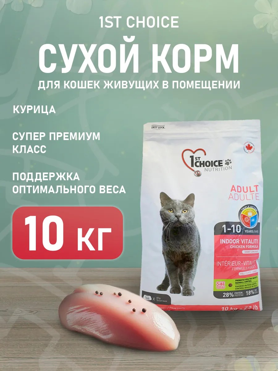 1st choice cat adult indoor vitality на основе мяса курицы — идеальная формула с тщательно отобранными ингредиентами для домашних кошек.