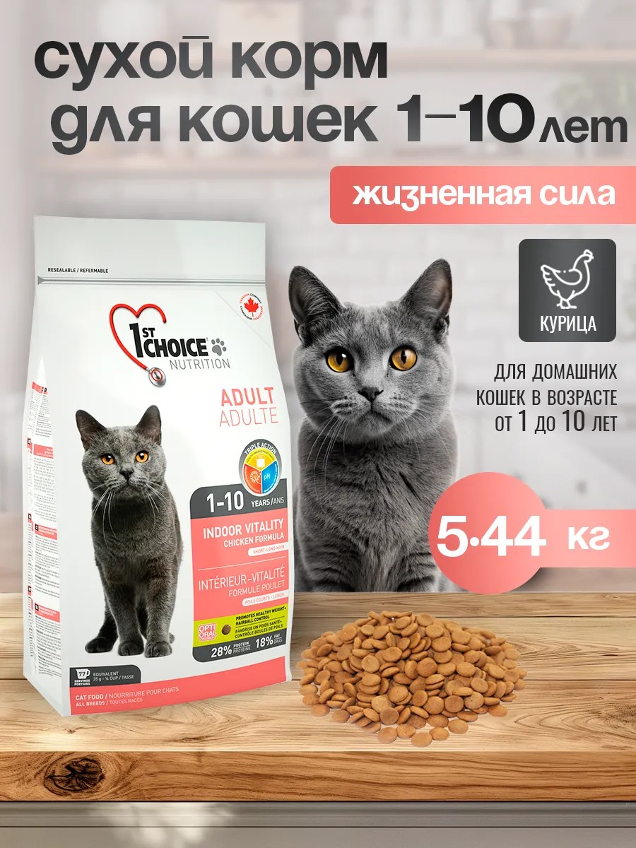 1st Choice сухой корм для домашних кошек с цыпленком 5,44 кг