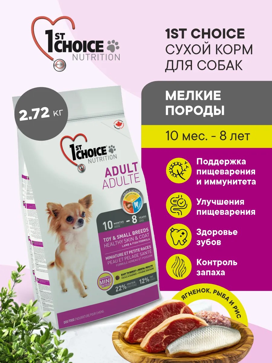 1st Choice Корм для собак мелких сухой для кожи и шерсти Ягнёнок,2.72кг