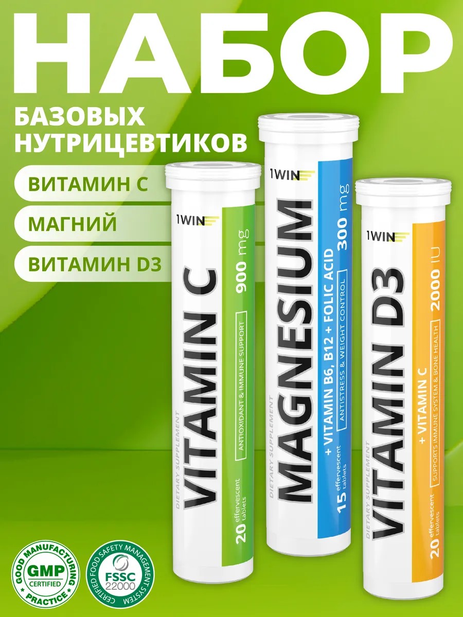 1WIN Набор нутрицевтиков: Магний+В6 Витамин D3 Витамин С