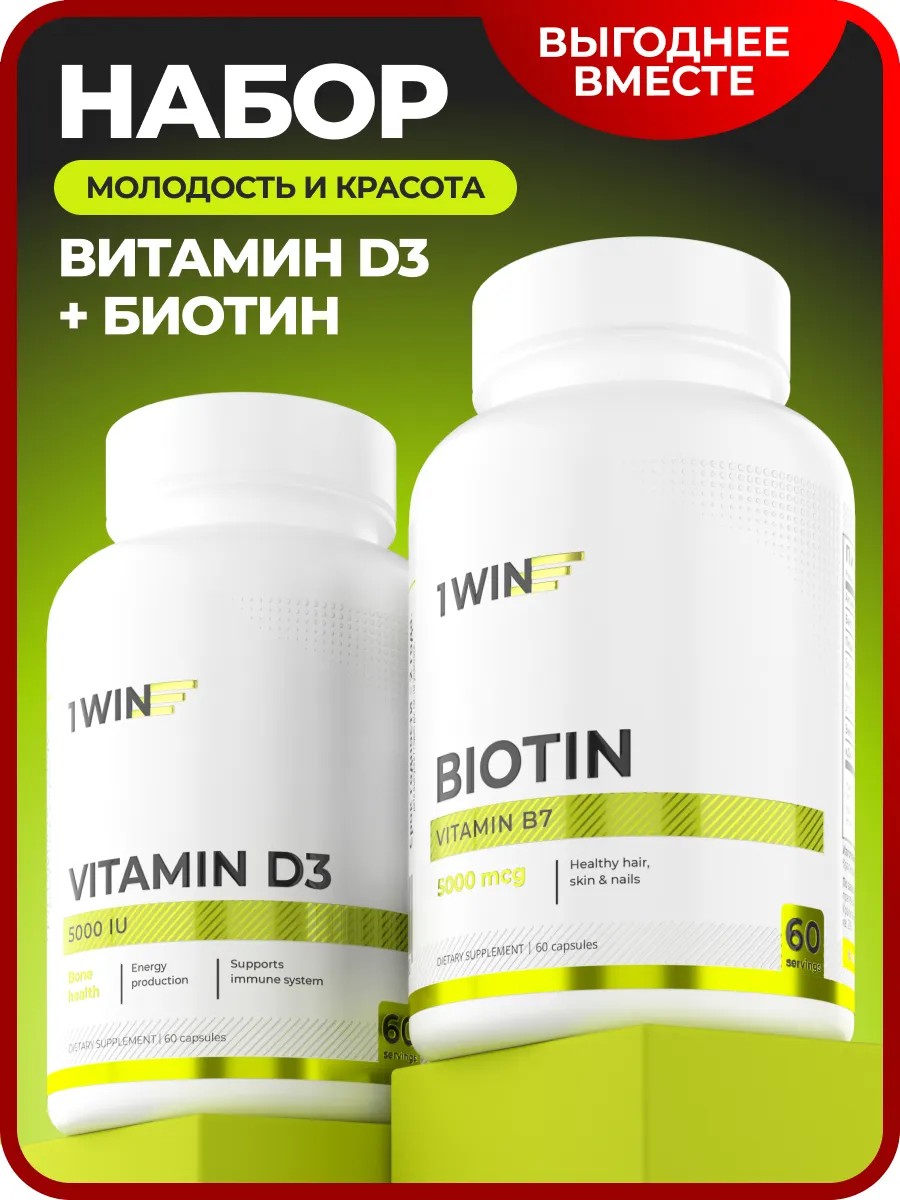1WIN Набор витаминов Биотин и Д3 5000 ме