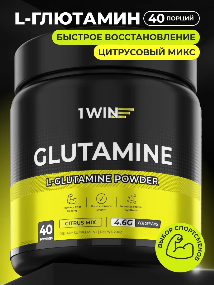 Долго восстанавливаешься после тренировок? Болят мышцы и нет сил? Добавь энергии для новых рекордов с Глютамином от 1WIN!