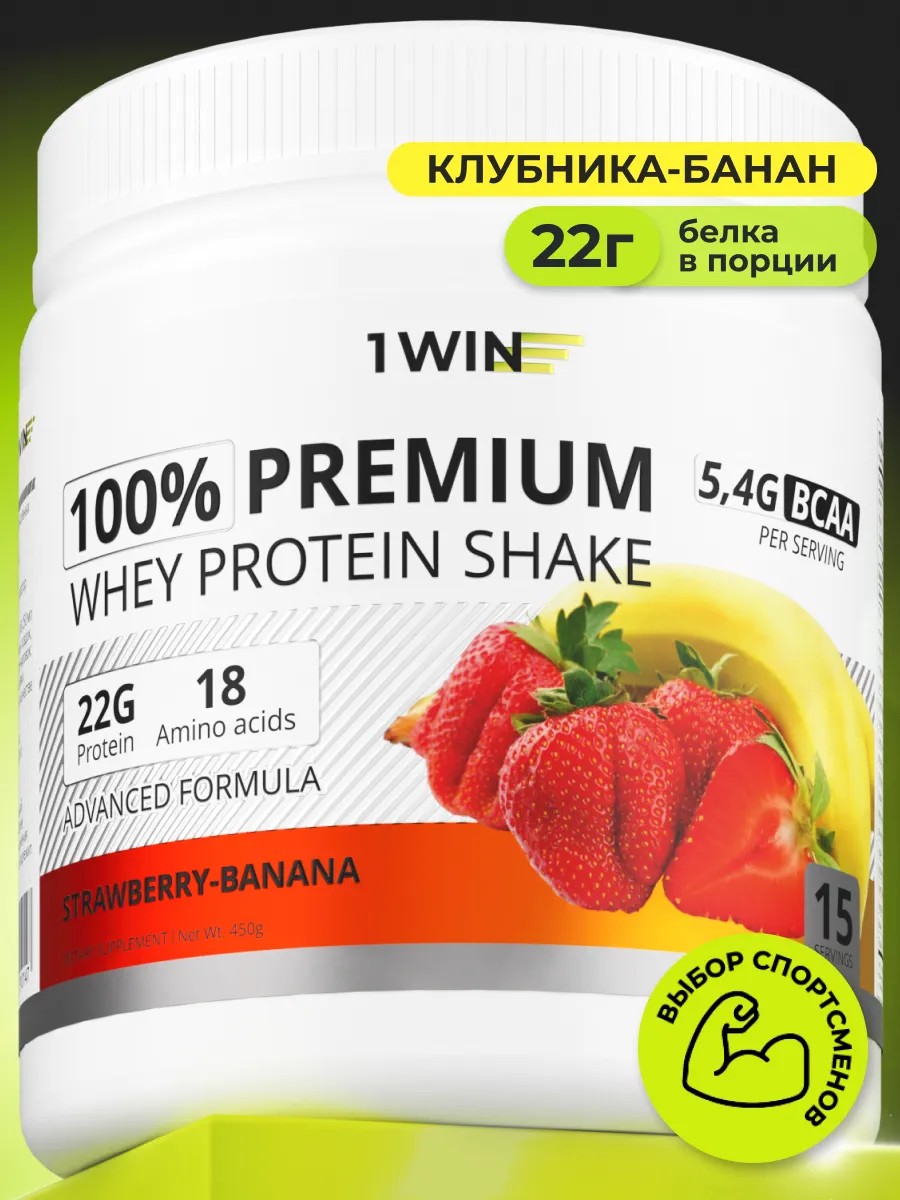 Premium Protein 1WIN Strawberry Banana Flavor is a high-protein shake that perfectly supports the body during intense training and weight management. This protein shake replenishes protein deficiency and provides nutrients. Whey protein prevents muscle breakdown (catabolism), promoting rapid recovery after physical activity.