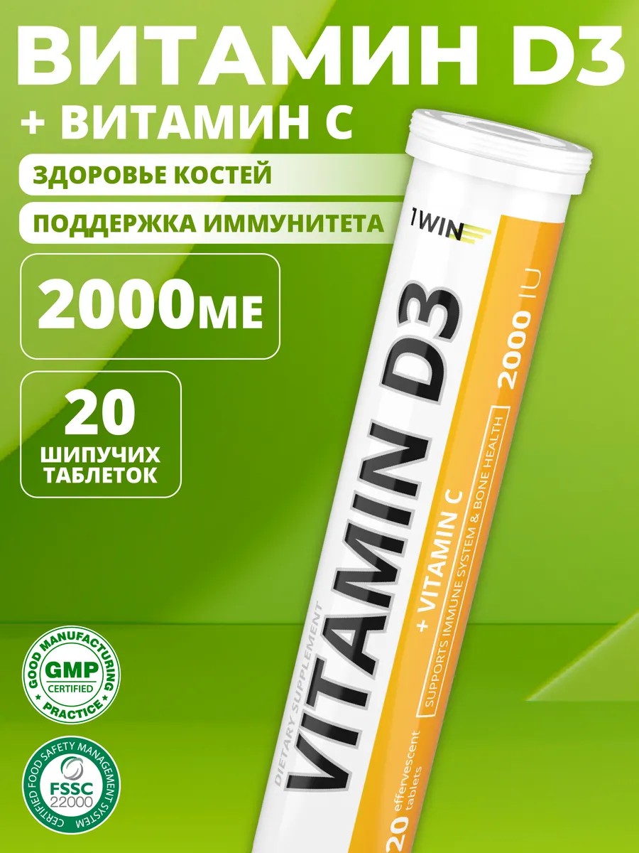 1WIN Витамин D3 2000 шипучий Д3