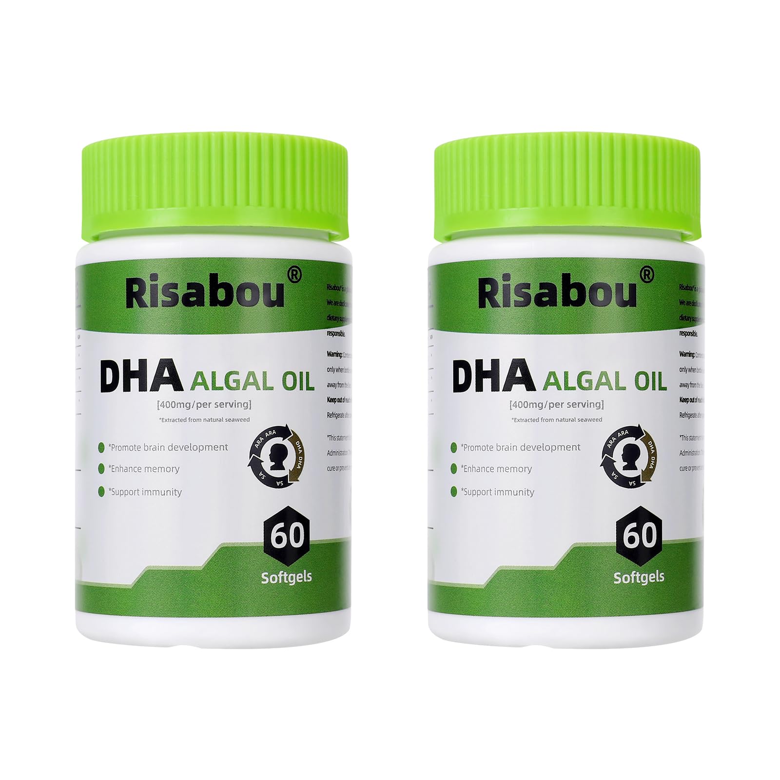 2 Bottles Algal Oil DHA 400 mg with ARA and SA 120 Softgels Algae Oil - DHA Omega 3 Supplement 1 Softgel per Serving for Brain Memory & Nervous System Support - Non-GMO