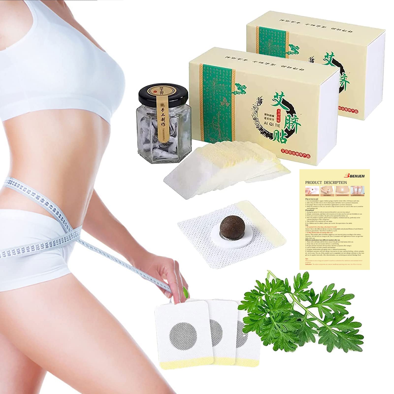 2 Boxes Mugwort Belly Patch,60Pcs Natural Wormwood Essence Pills and 60Pcs Belly Sticker, Moxa Hot Moxibustion Navel Wormwood Sticker
