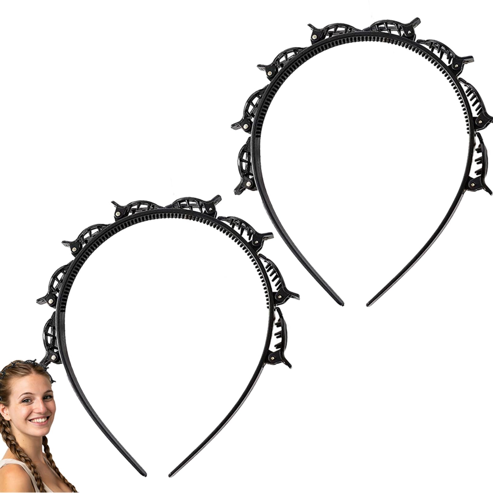 2 Double Bangs Hairstyle Hairpin Hairpin Headbands Twist and Clip Teeth Comb Hair Hoop Headband with Clips Attached Double Layer Twist Plait Headband Hair Tool Hair Styling Tools Black