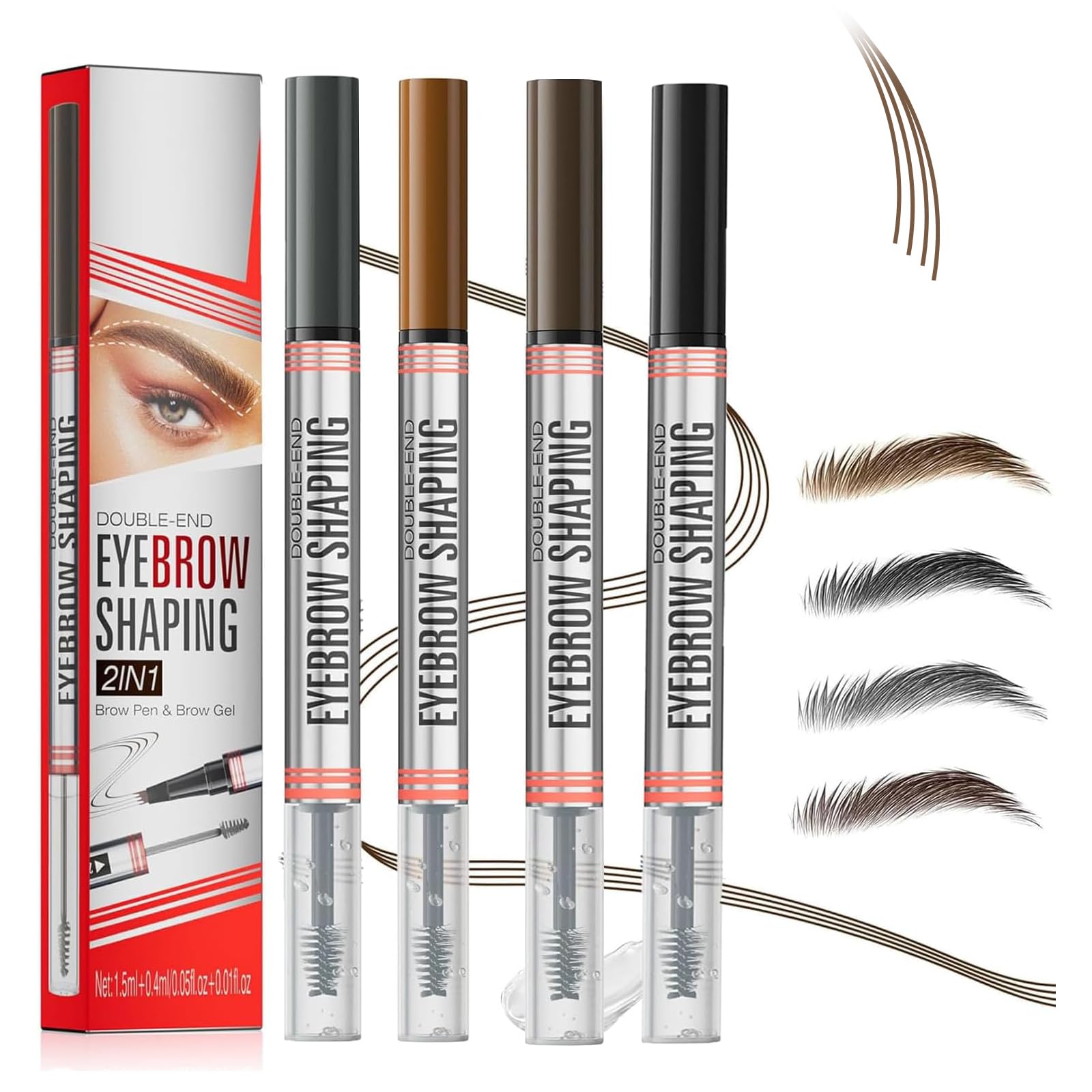 2 in 1 3D Waterproof Eyebrow Pen 2024 Micro Eyebrow Pencil with Eyebrow Gel Natural Makeup Fine Pen All-day Use (ALL-4 Pcs) All-4 Pcs 1 count (Pack of 1)