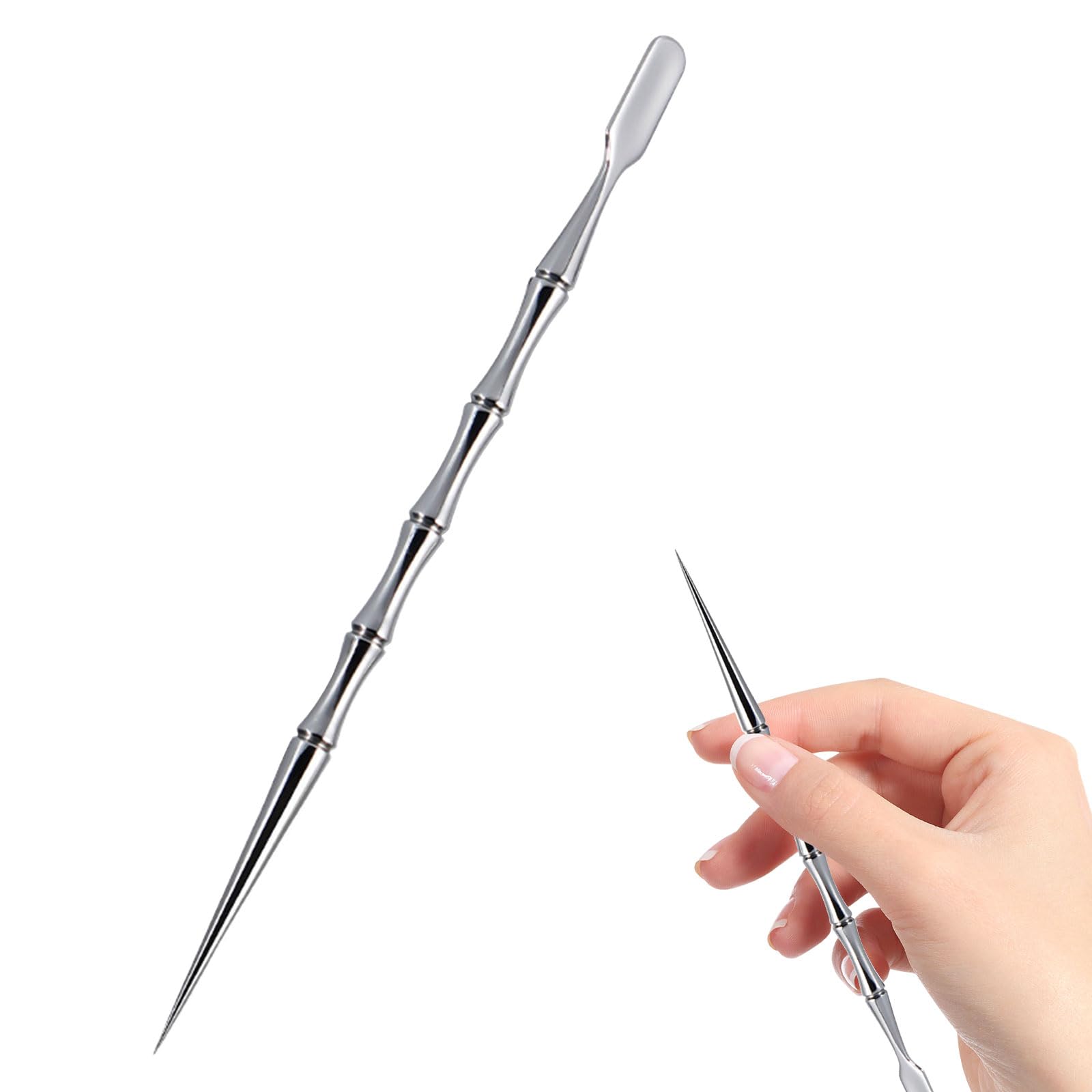 2-in-1 Acne Tools Extractor Scraper with Blackhead Remover Needle for Women Men (1 Pack) Silver-01