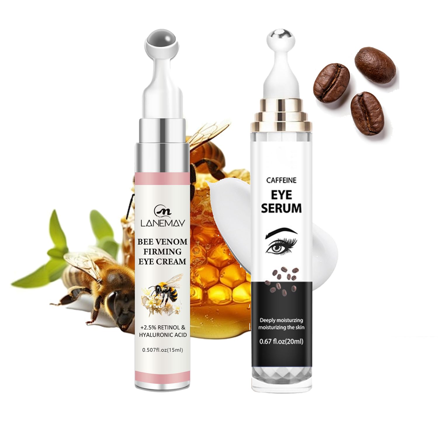 2-in-1 Eye care Set - Caffeine & Retinol Eye Cream + Bee Venom & Hyaluronic Acid Eye Serum 360 Roller for Dark Circles Puffiness & Fine Lines Day & Night