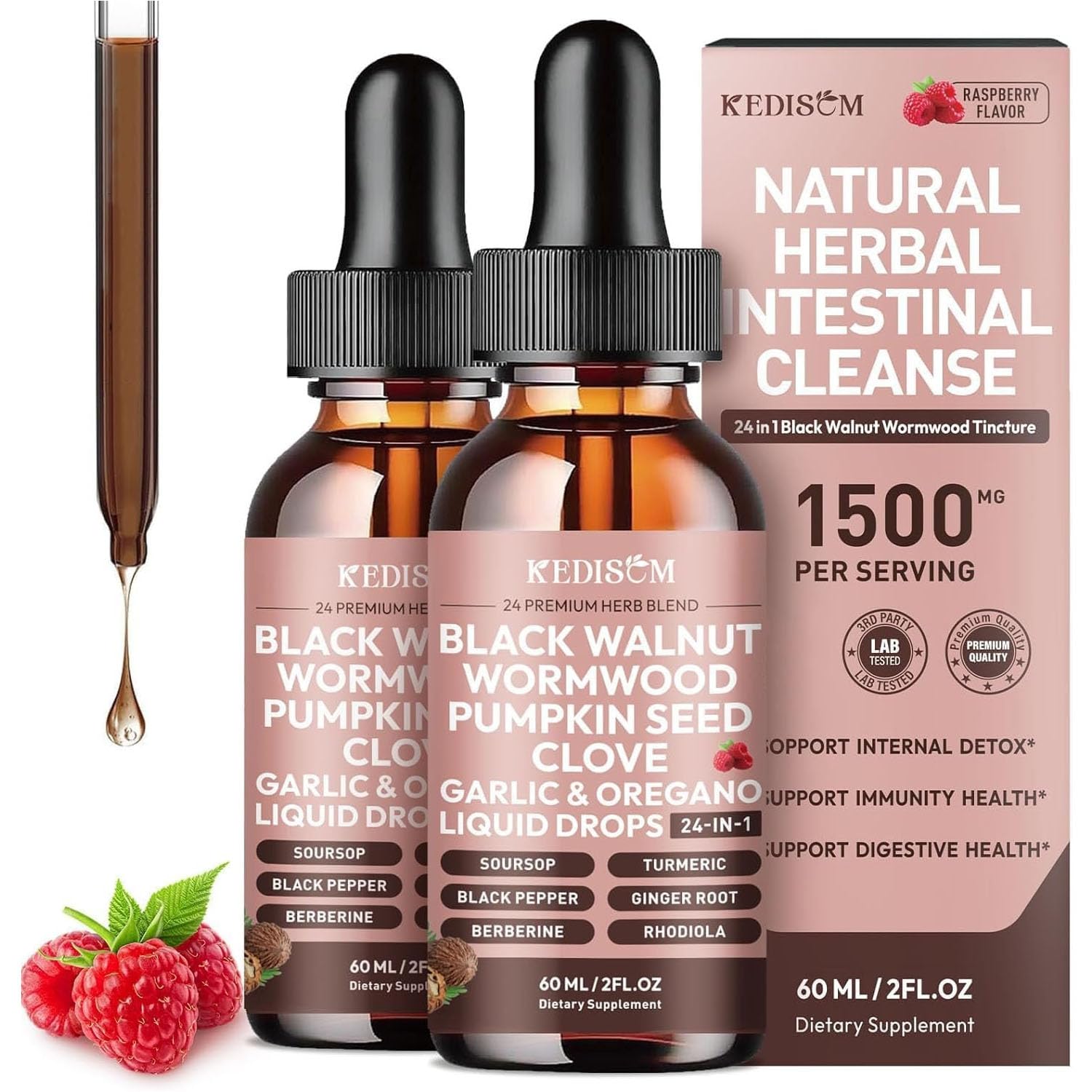Men And Womens Green Black Walnut Wormwood Complex Liquid Droppers: Packed with minerals and herbs like garlic powder, black walnut tincture, pumpkin seeds organic, oil of oregano and multivitamins, together aid with liver support, immune health, gut lining and overall health. Rich with pumpkin seed oil for hair growth, B9 supplement and iron adds additional overall benefit. Mineral drops provide easier absorption with just few drops a day in your favorite food or drink that works great as an everyday multivitamin. Soursop Oil With Organic Oregano Oil: Formulated with nutrients like wormwood tincture, soursop, berberine, grapefruit seed extract, and red clover which delivers potent ingredients for your wellness. Each liquid dropper bottle is filled with vitamins and supplements that provides gut health for men and women. Turmeric curcumin supplement, another key ingredient aids with cellular health fennel seed supports gut flora and digestive aid. Black Wanut Hull Digestive Aid With Organic Garlic: Blend of vitamins and minerals with black walnut hull, organic berberine, red clover supplement, and turmeric powder. Wormwood herb is filled with minerals like potassium, zinc, vitamin E, and magnesium which adds an extra layer of support of gut health for women and men to aid with digestion. Along with digestive health, our liquid drops support bringing balance to your overall health. Wormwood Gut Health For Women And Men: Formulated with nutrients like sweet wormwood, garlic oil, black walnut extract, pumpkin seeds, oregano oil, and turmeric supplement which delivers potent ingredients for your wellness. Each liquid dropper bottle is filled with vitamins and supplements that provides gut support. While garlic supplements filled with vitamin C, black walnut oil is enriched with vitamin A. KEDISOM'S vitamins for men and women provide a holistic approach to your health journey. Liposomal Delivery High Absorption: Experience superior nutrient uptake (up to 98 absorption!) for high potency in every 1500mg serving.Get the most out of every dose! Our advanced liposomal technology protects key ingredients from stomach acid, delivering wormwood black walnut clove right where your body absorbs best – your small intestine.