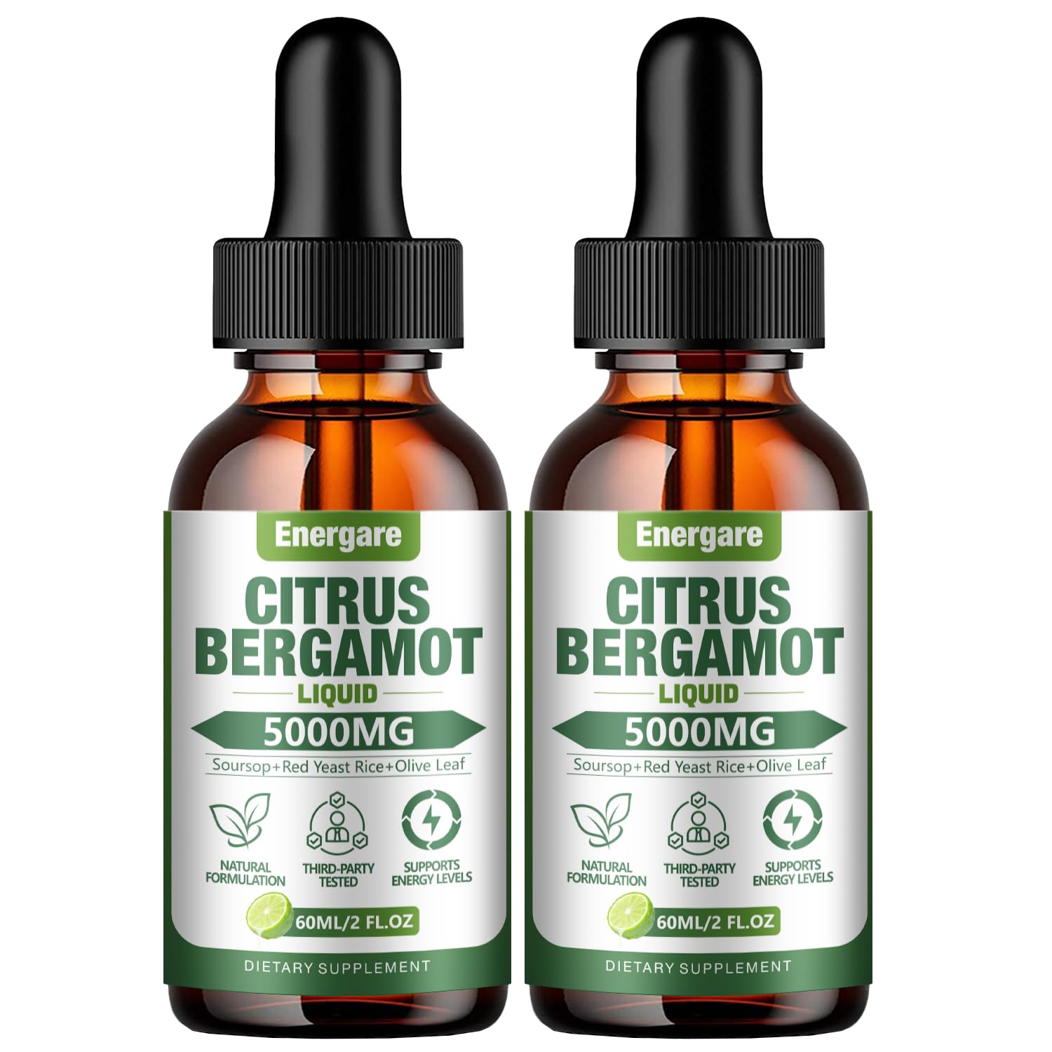 2 Pack 5000MG Citrus Bergamot Liquid Drops Supplement for High Cholesterol-Soursop Red Yeast Rice Olive Leaf-All-Natural Health Support Immune Support & Antioxidant 4 Fl Oz 2 Pack (4 Fl Oz)