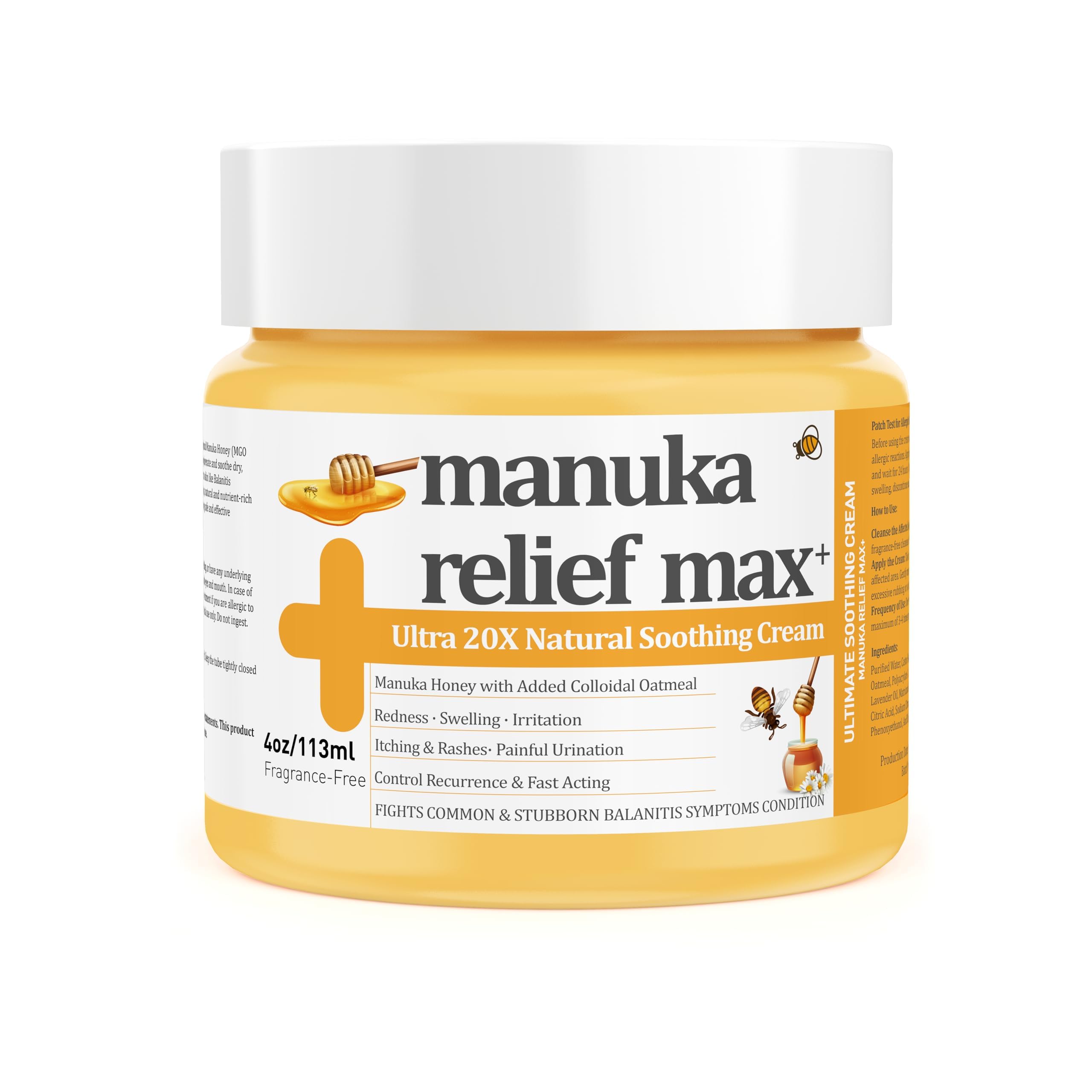 2 Pack Balanitis Relief Cream - Manuka Honey Tea Tree Oil Balm, 100 Organic Natural, Gentle, Soothing Ointment, Relief from Irritation, Itch, Redness, Balanitis, Maximum Strength Treat, Fast Acting