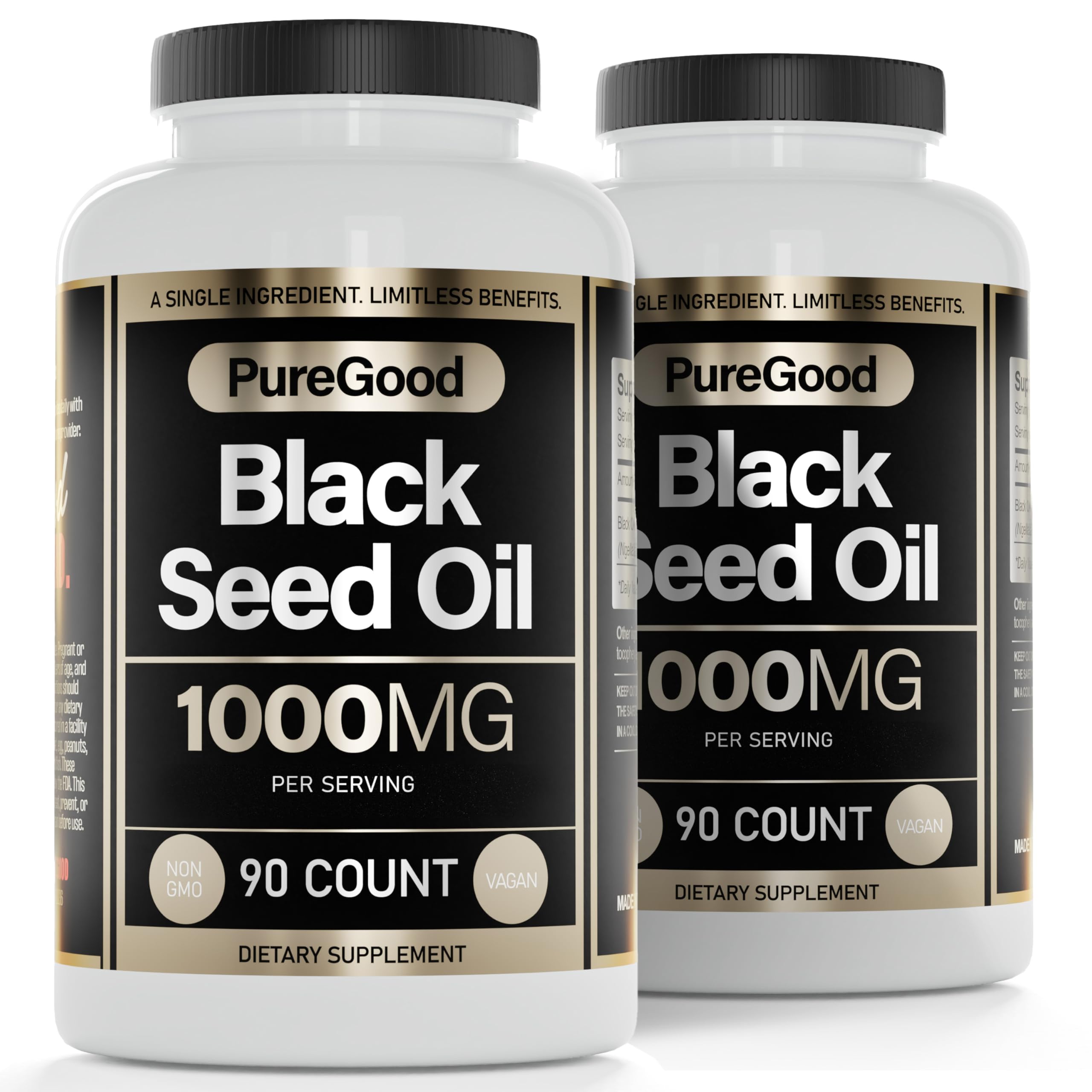 Countless Benefits: Black seed oil's benefits range from its anti-inflammatory effect to soothe eczema and acne, reducing gastrointestinal discomfort such as gas and bloating, to balancing cholesterol levels, hypertension, and more. What's In The Bottle: Each bottle of Pure Goodness organic Black Seed Oil Capsules contains 90 soft vegetable cg capsules of 100 cold pressed, vegan, non-GMO pure black seed oil. Support Strengthen: Our 100 pure nigella sativa black seed oil contains nigellone and thymoquinone, powerful antioxidants that promote cell activity, keeping your defense line supported and your immune system strong. Highest Purity: At PureGood, we prioritize quality and purity–with our premium ingredients and qualified manufacturing we ensure a product that meets the highest standards of purity, strength, and performance. Invest In Healthy Living: Improve your hair, skin digestion with the powerful benefits of cold-pressed natural black seed oil, packed with antioxidants, omegas, and amino acids that restore and maintain full hair, healthy muscles youthful skin.
