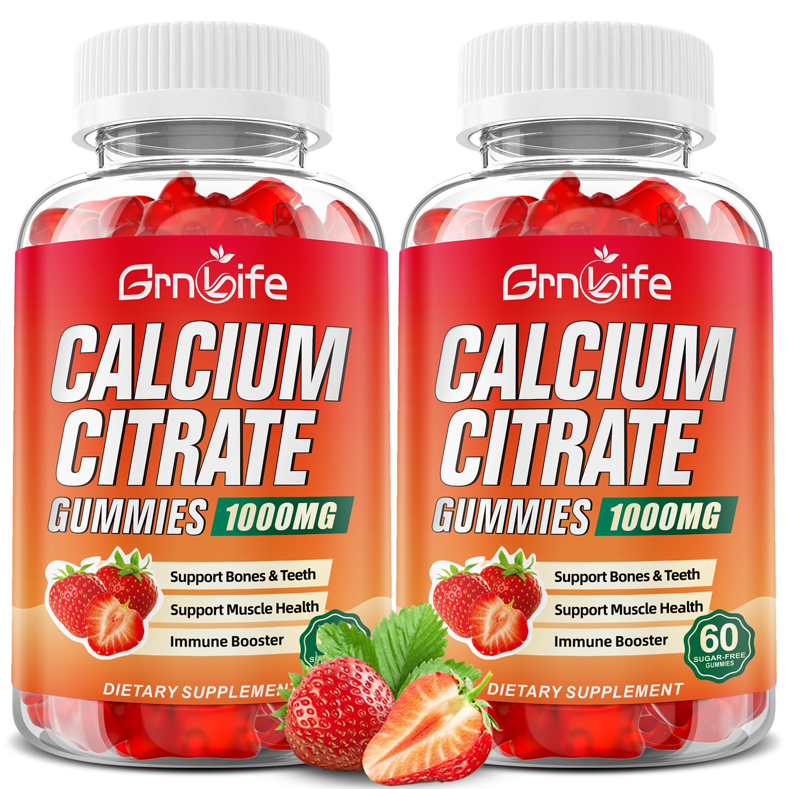 2 Pack Calcium Citrate Gummies Sugar Free Calcium Citrate 1000mg for Muscle Healthy Absorption Calcium Supplements for Adults & Kids Strawberry 120 Count 60 Count (Pack of 2)