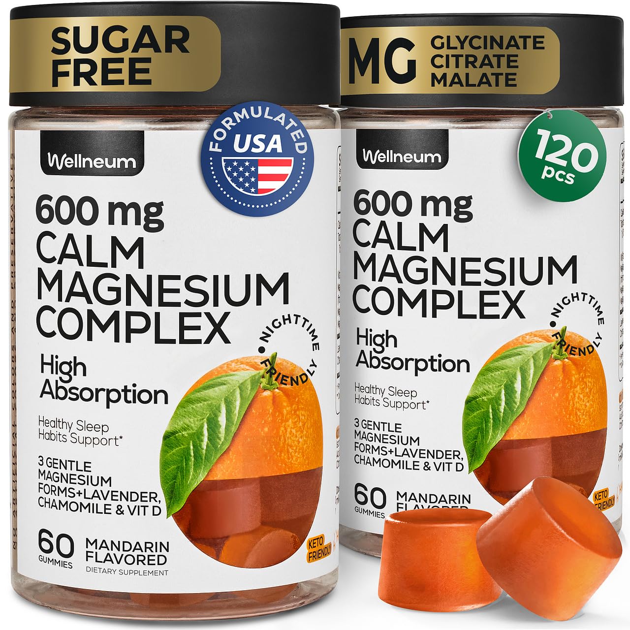 Brand Quality: all our products are sourced formulated and manufactured with the highest quality standards to ensure accurate purity and potency. Convenient and Portable: forget about multiple bottles of useless pills, capsules and powders. Our Magnesium Gummies with Vitamin D, Lavender and Chamomile designed and packed for on-the-go usage. Delicious Mandarine Taste: with the natural mandarin flavor, these sugar free Magnesium Gummies are not only enjoyable to chew but also make it easier to incorporate magnesium complex into your diet. Focus Enhancement: thanks to our Magnesium Glycinate Gummies, experience a gentle solution to maintain concentration these gummies are for healthy sleep habits without the dependency on any artificial aids. Holistic Magnesium Supplement: our Magnesium Gummies contain 600 mg of magnesium Glycinate, Citrate, Malate, Vitamin D our formula goes beyond the lighter 200 mg and 400 mg blends to support body, mood and cognitive health.